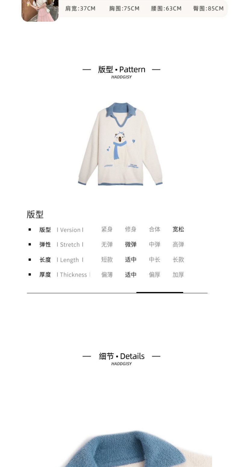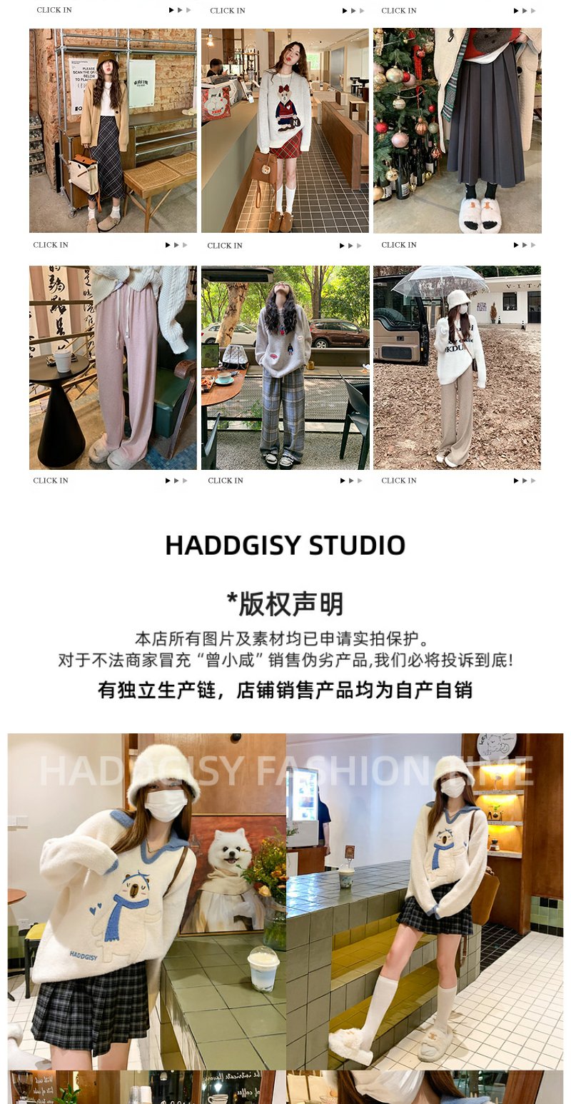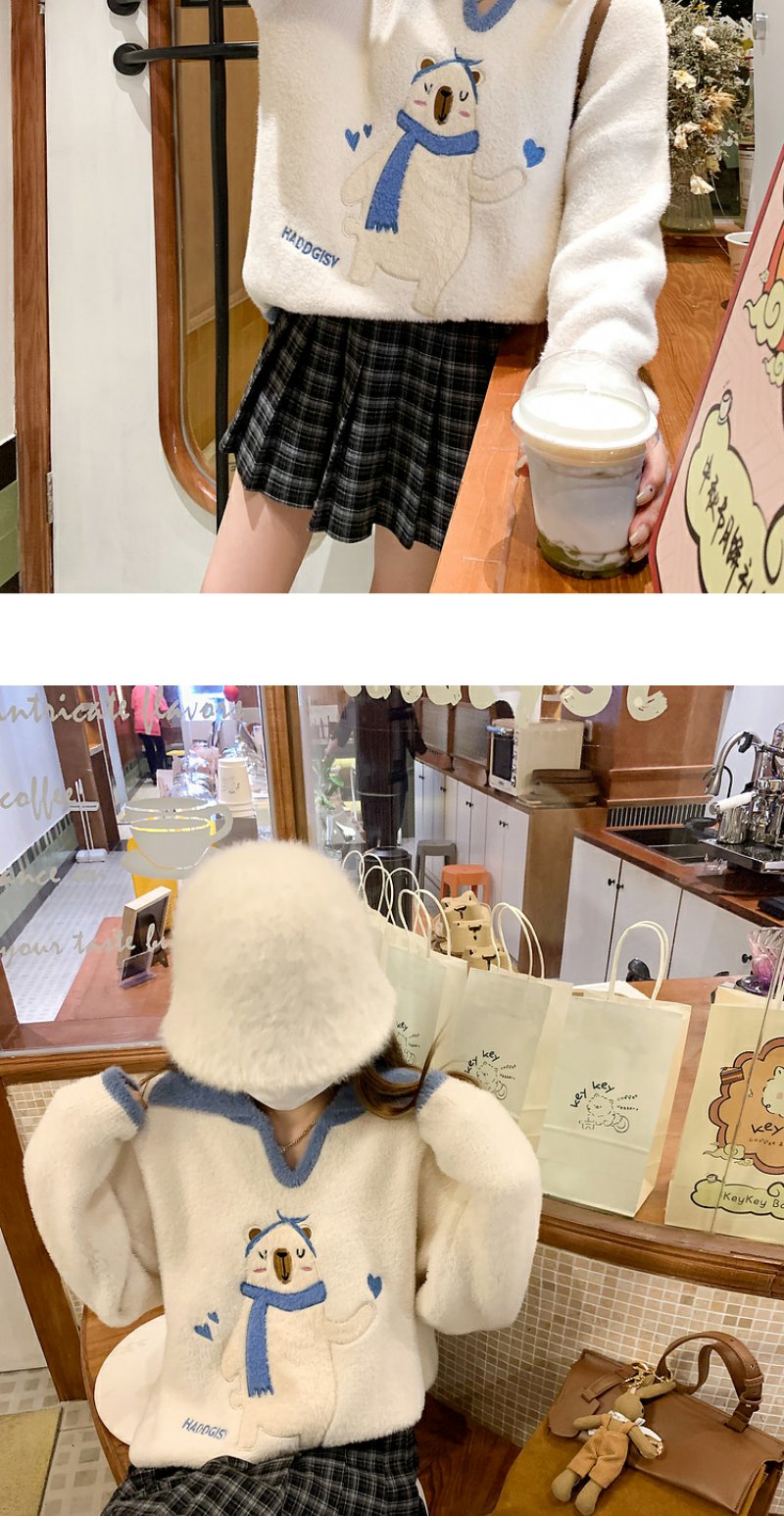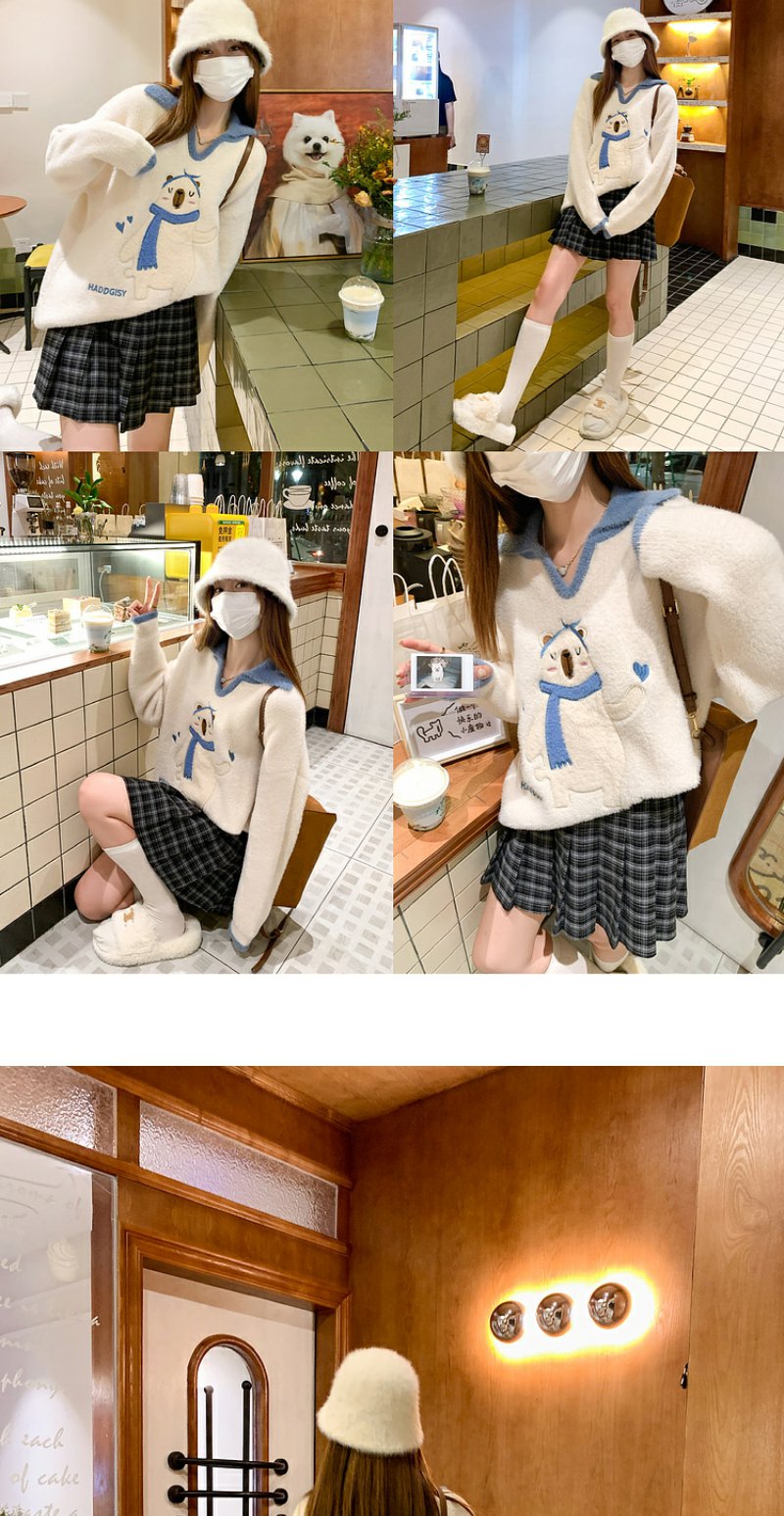 <曾小咸推荐>【甜美减龄】撞色领小熊印花毛衣