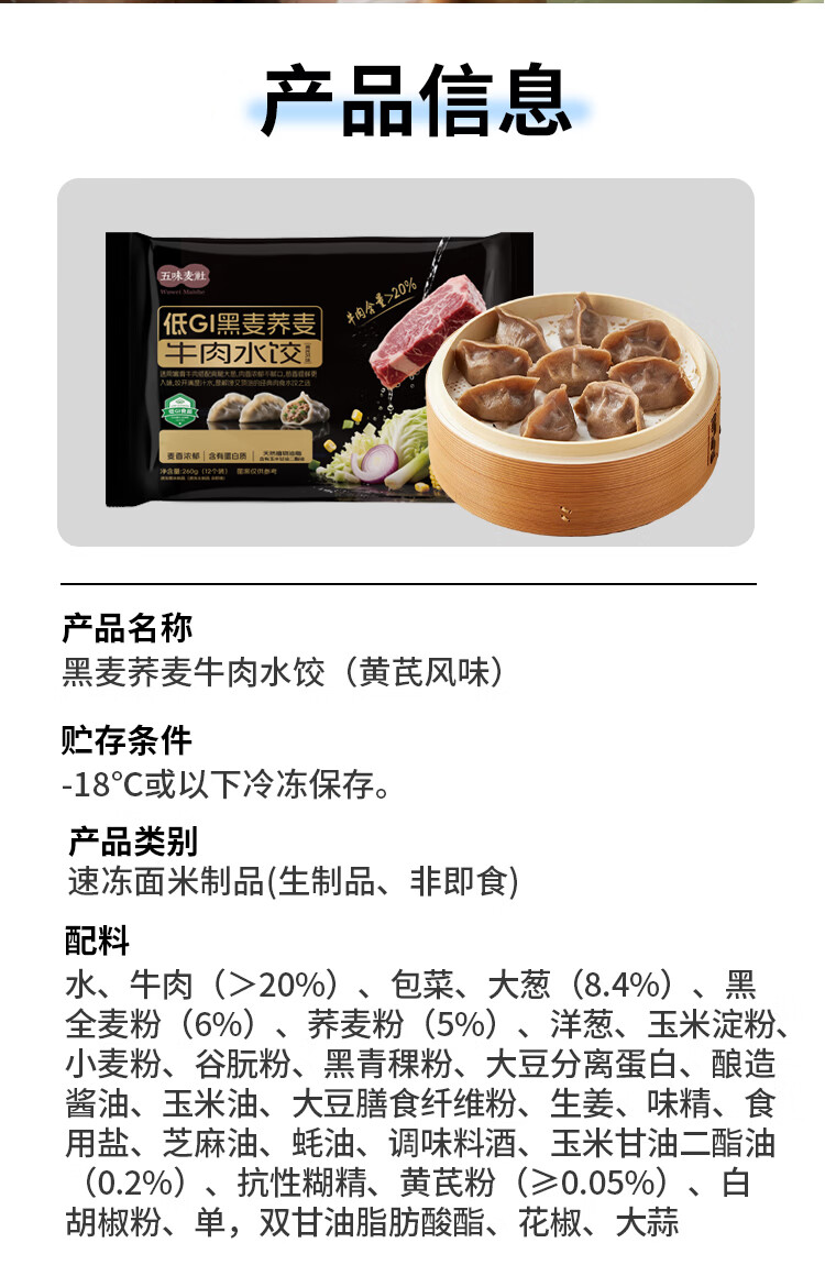 五味麦社 黑麦荞麦牛肉水饺260g/袋【冷冻】