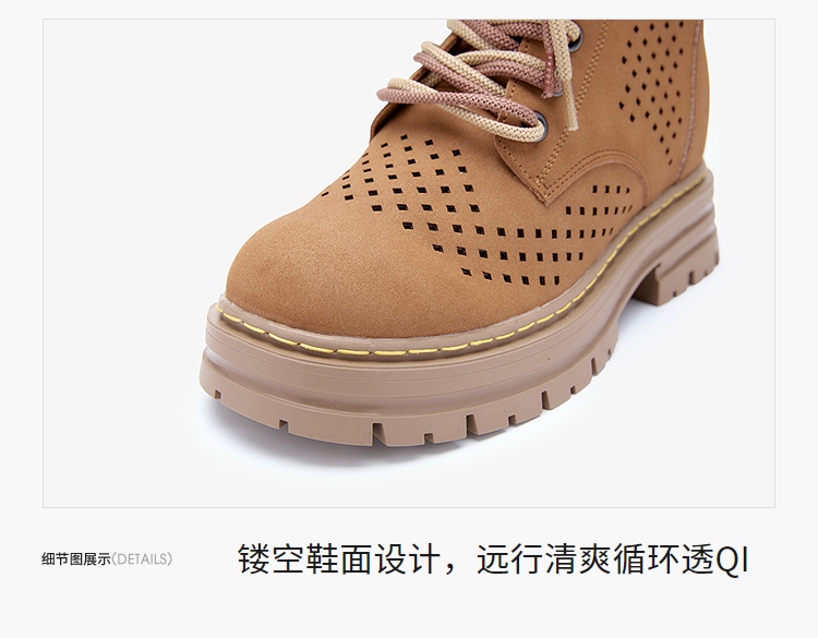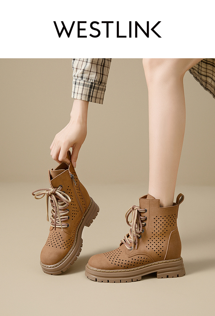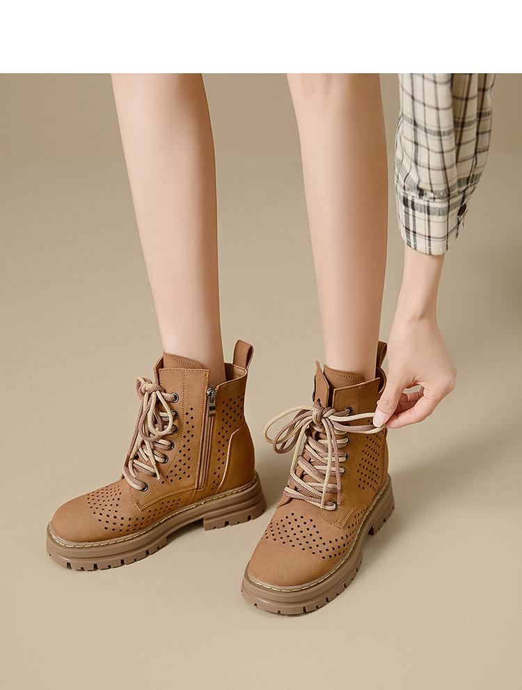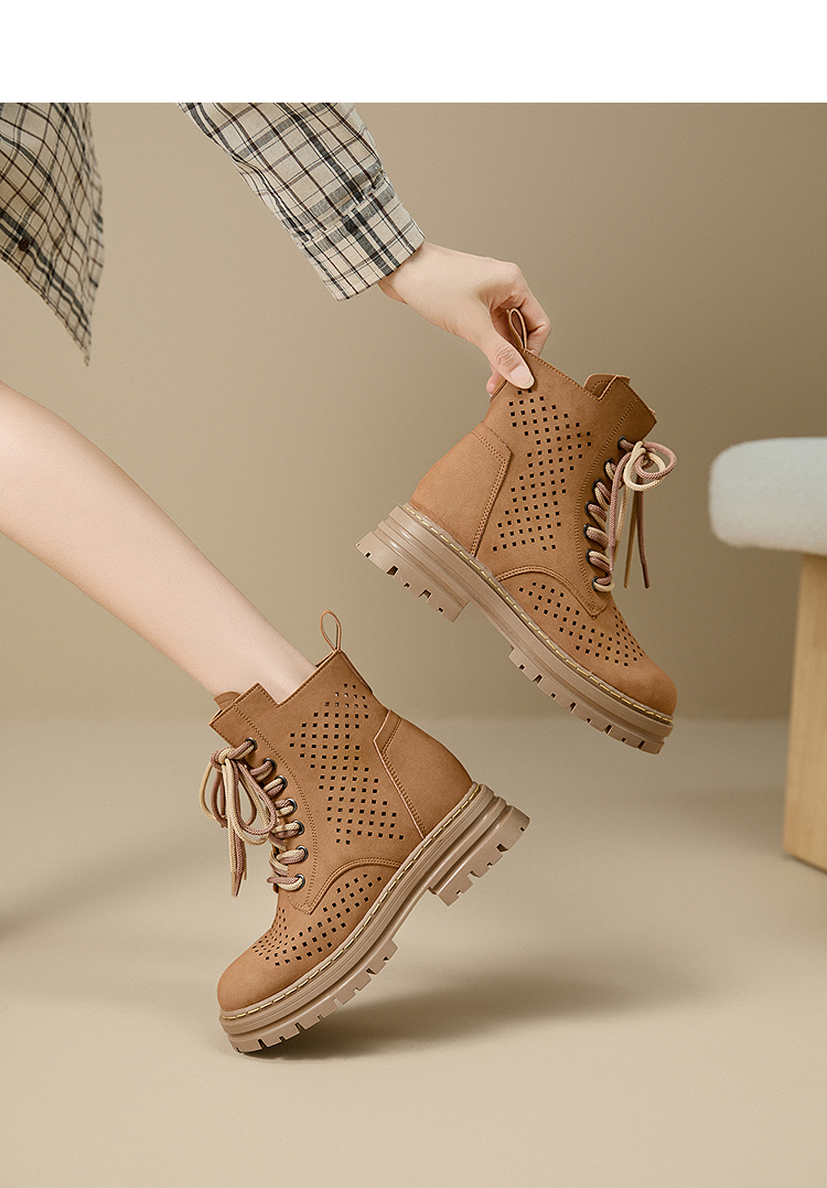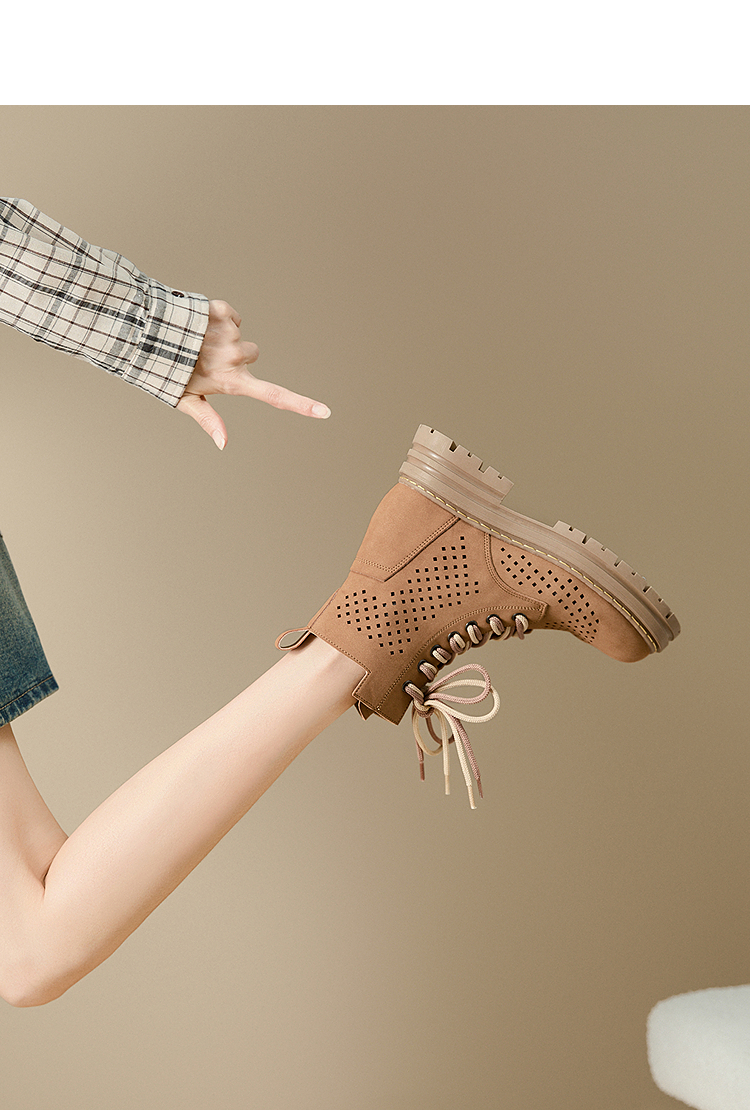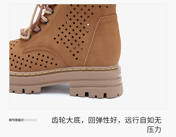 西遇镂空马丁靴女新款秋季复古废土风厚底棕色短靴户外大黄靴V0057012