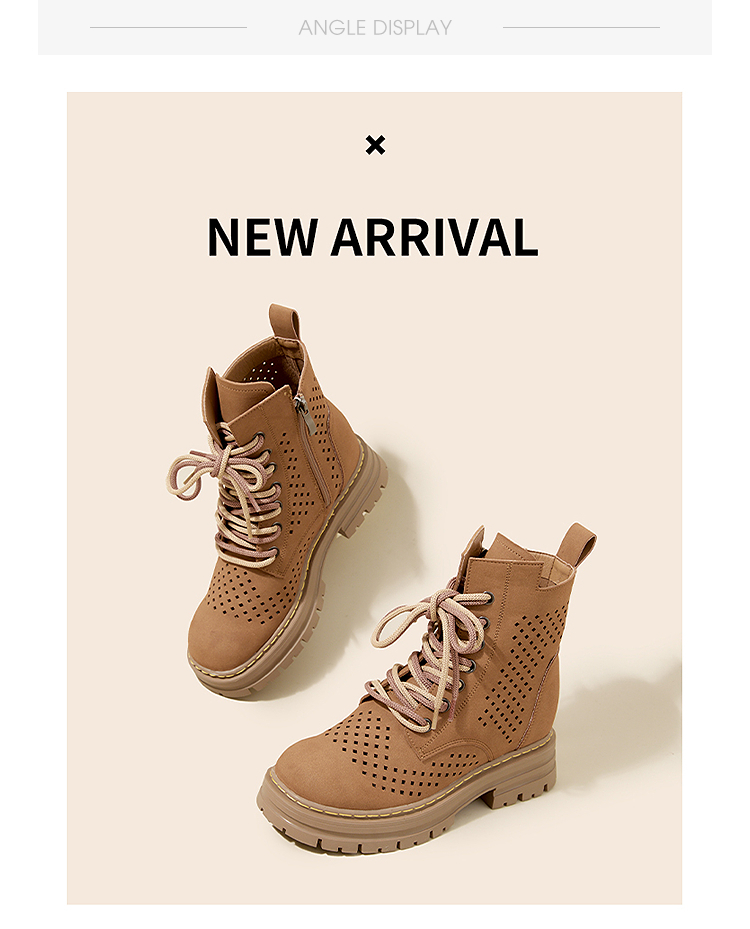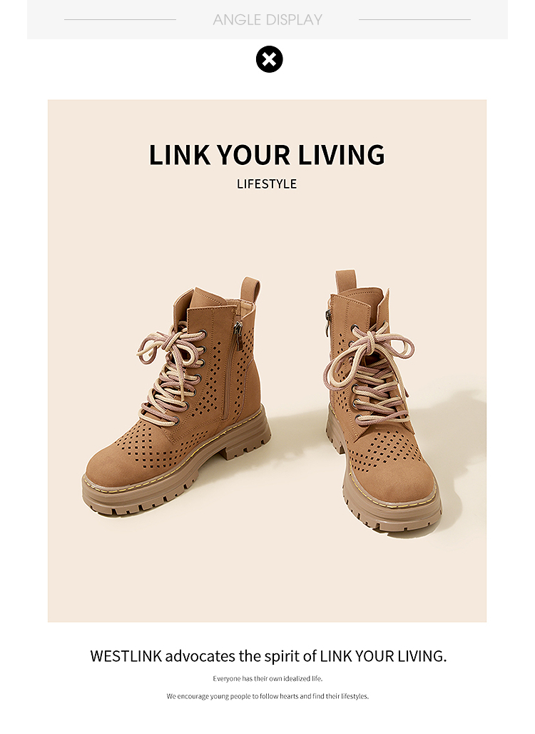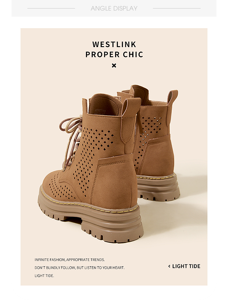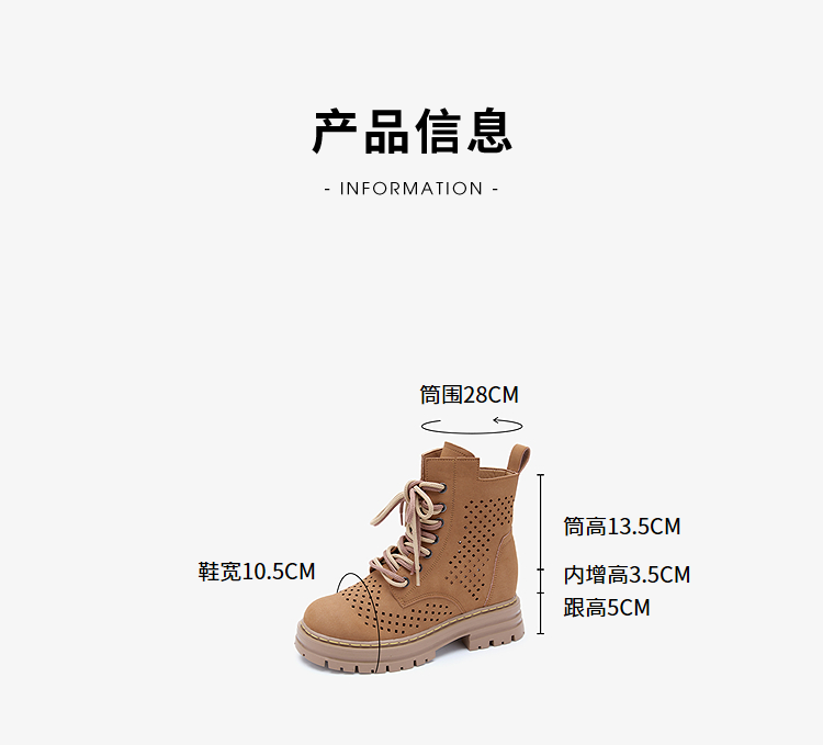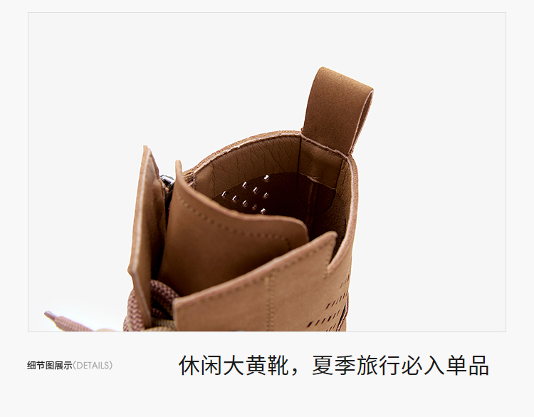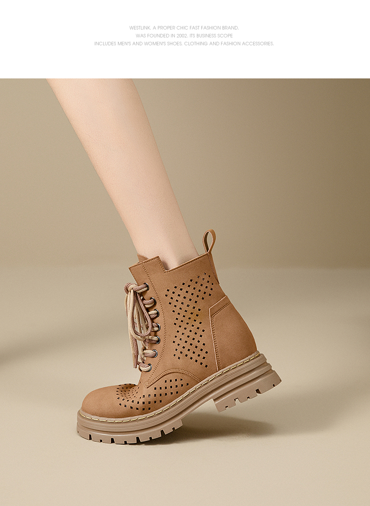 西遇镂空马丁靴女新款秋季复古废土风厚底棕色短靴户外大黄靴V0057012