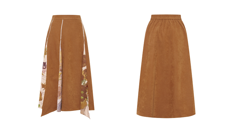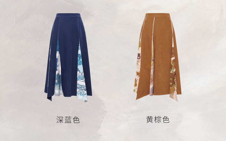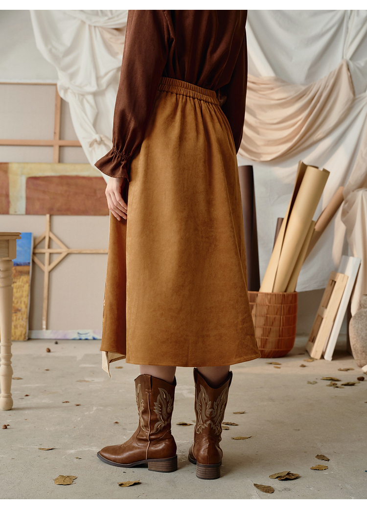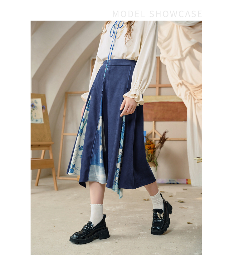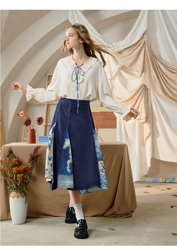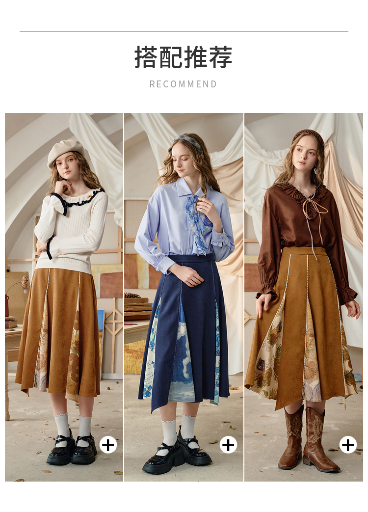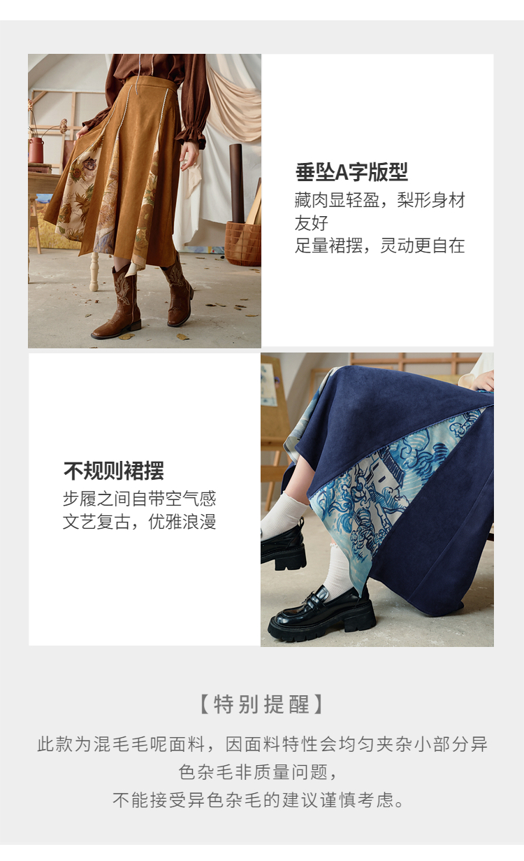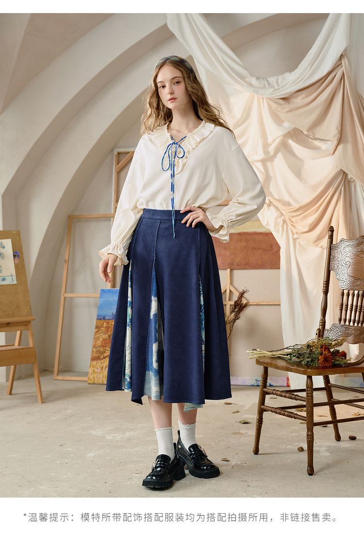 两三事梵高文艺 秋风听澜 2025秋冬新款印花布拼接a字半身裙长裙