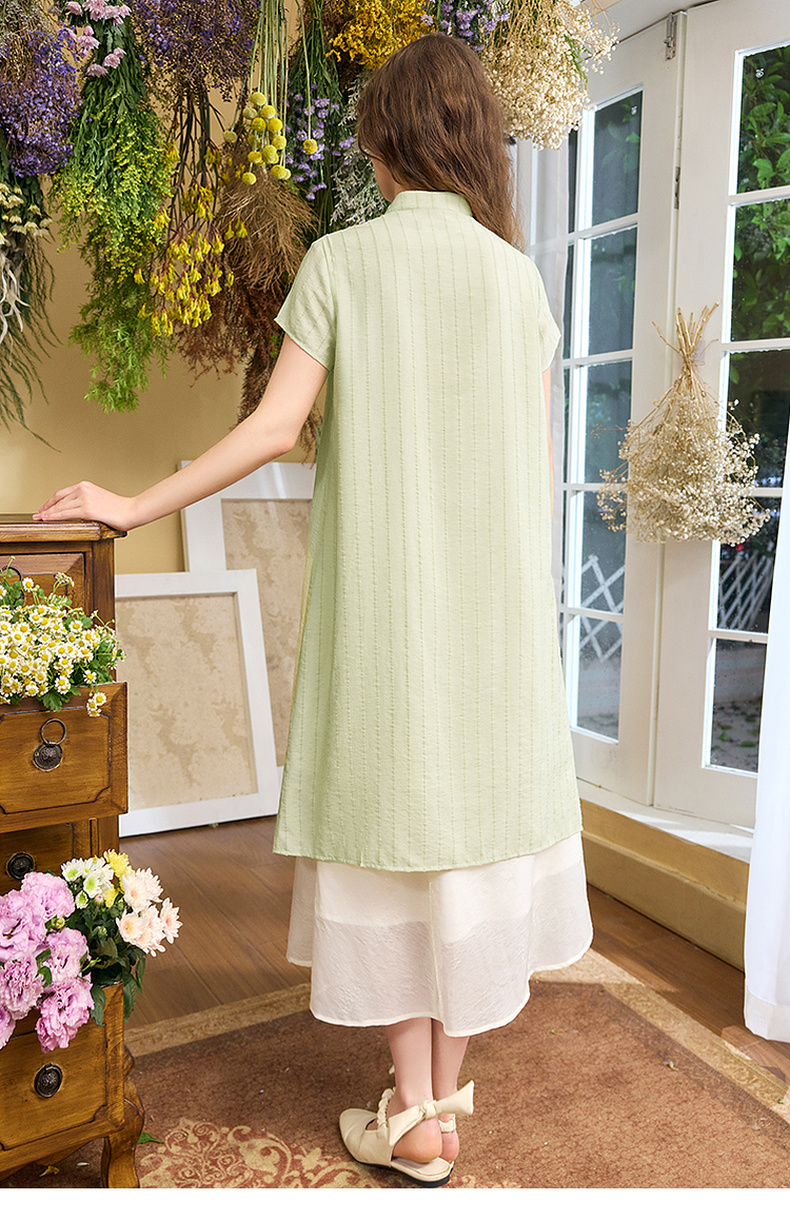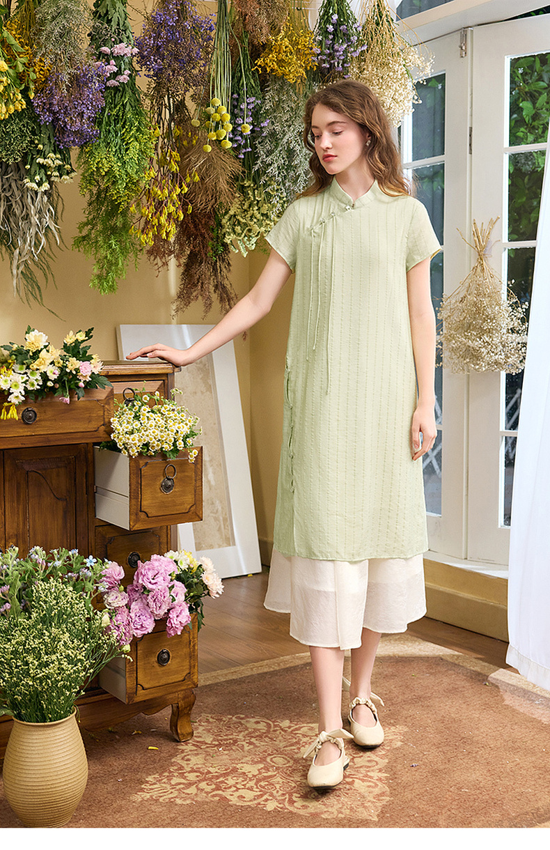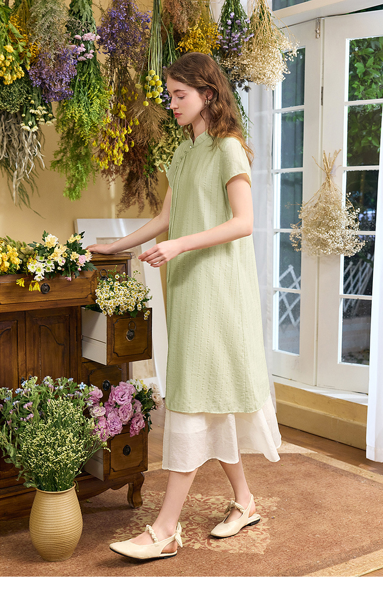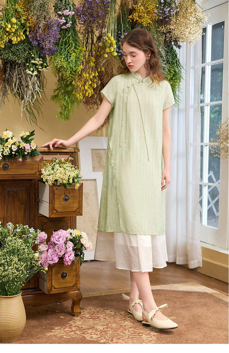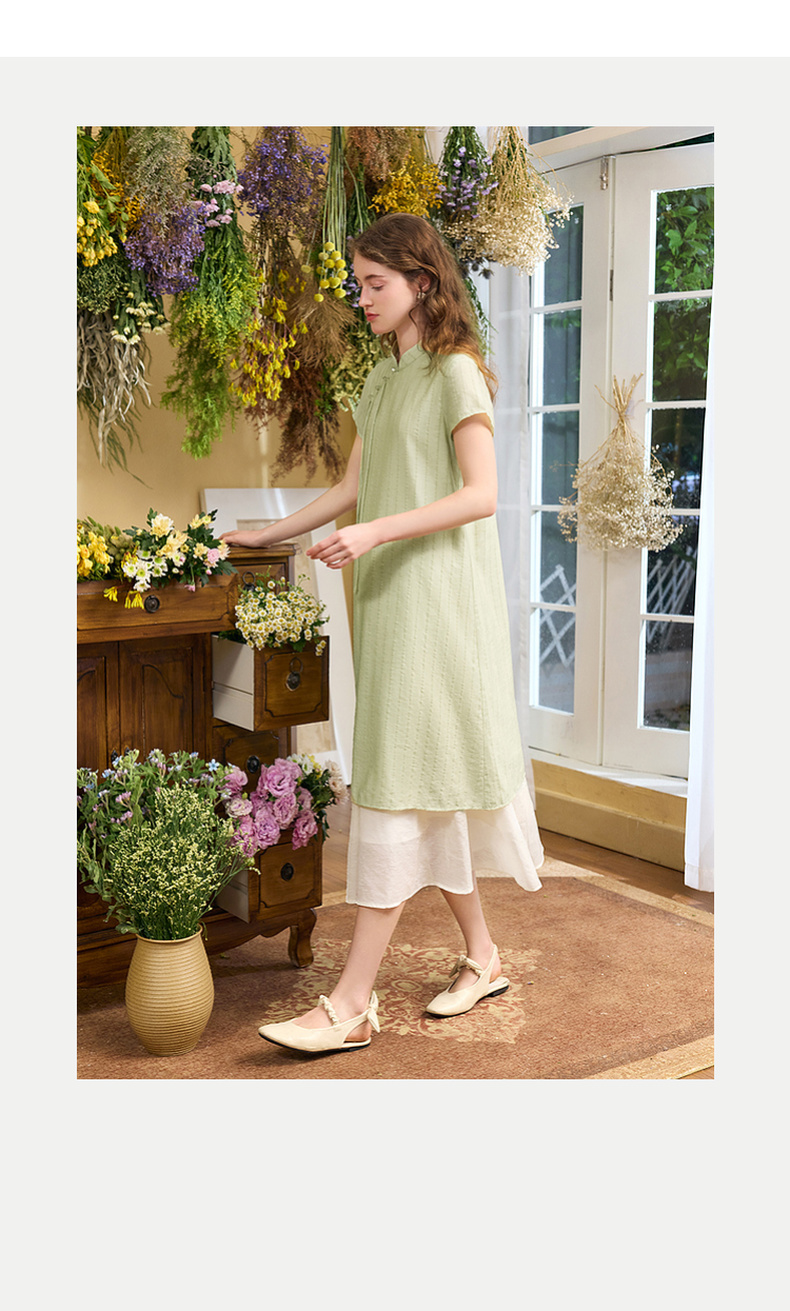 两三事云雾睡莲夏季新款复古吊带连衣裙荷叶边小众原创长裙