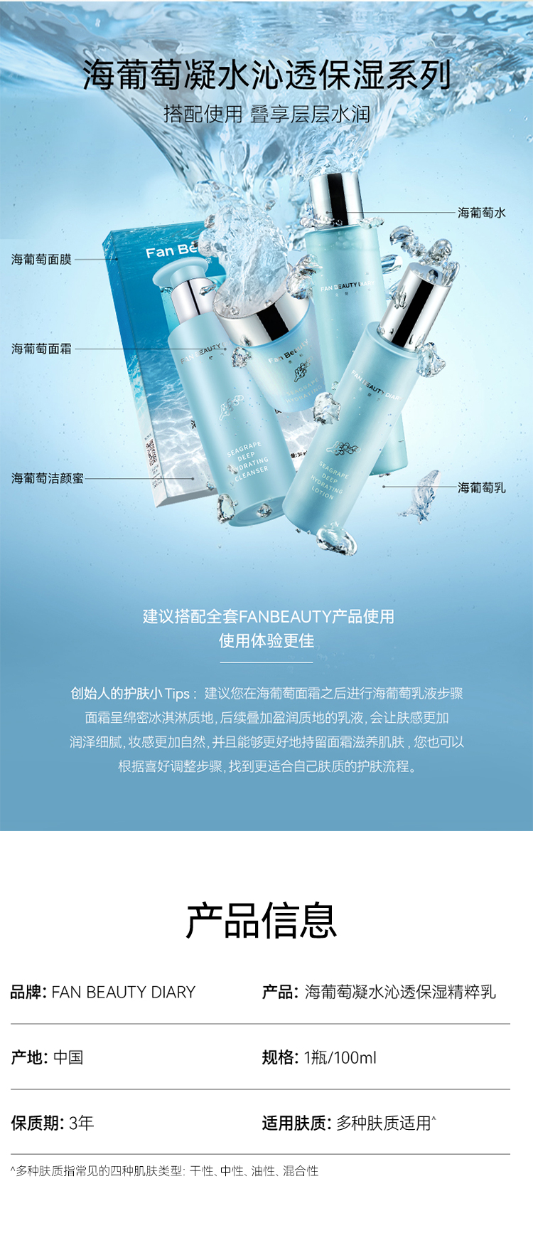 【双十二返场】海葡萄凝水沁透保湿精粹乳100ml/瓶