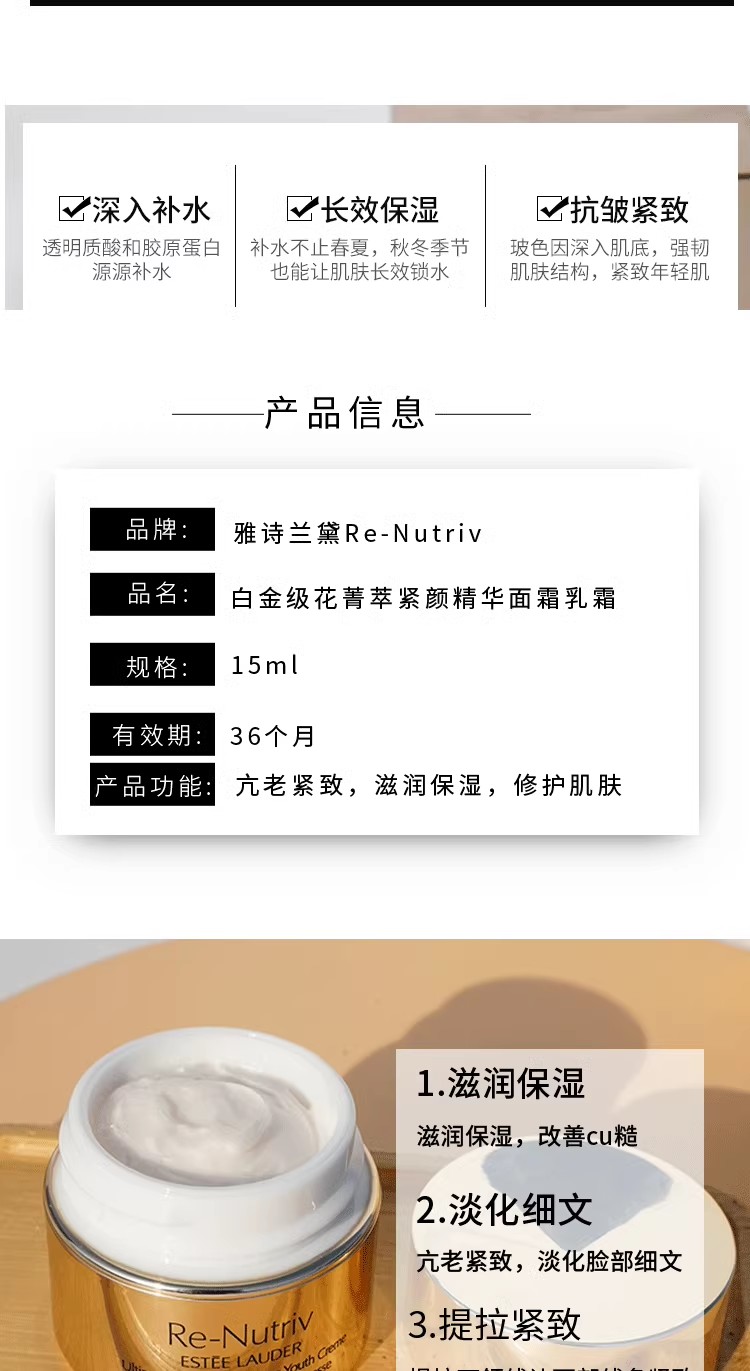 【专柜正品】雅诗兰黛白金级花菁萃紧颜精华面霜15ml