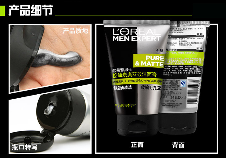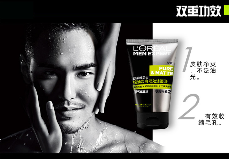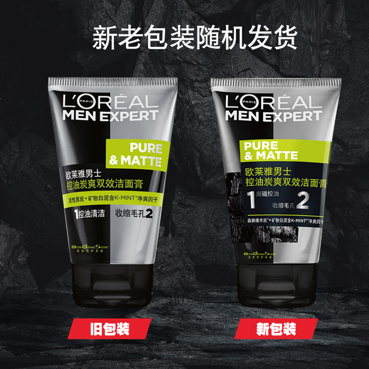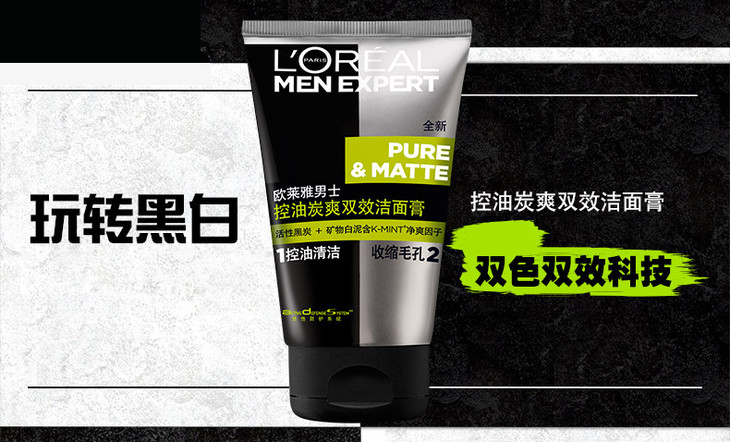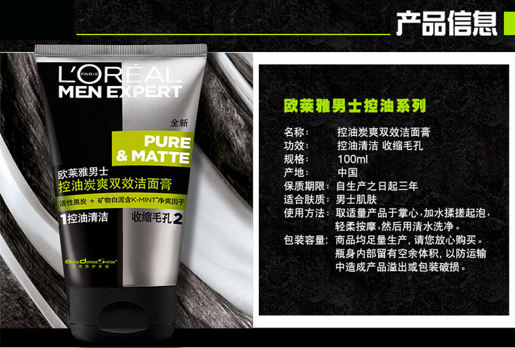欧莱雅男士控油炭爽双效洁面膏100ml
