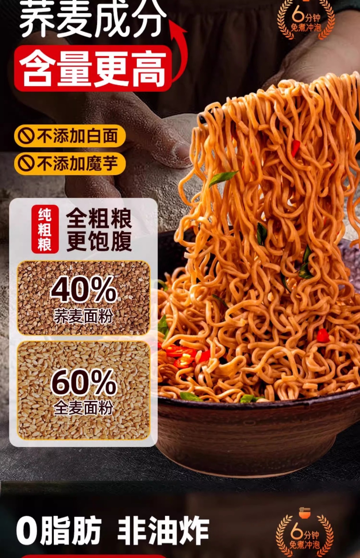 0脂肪荞麦面无糖精泡面方便面条免煮拌面代餐粗粮轻速食整箱童年记忆老家特产零食网红零食