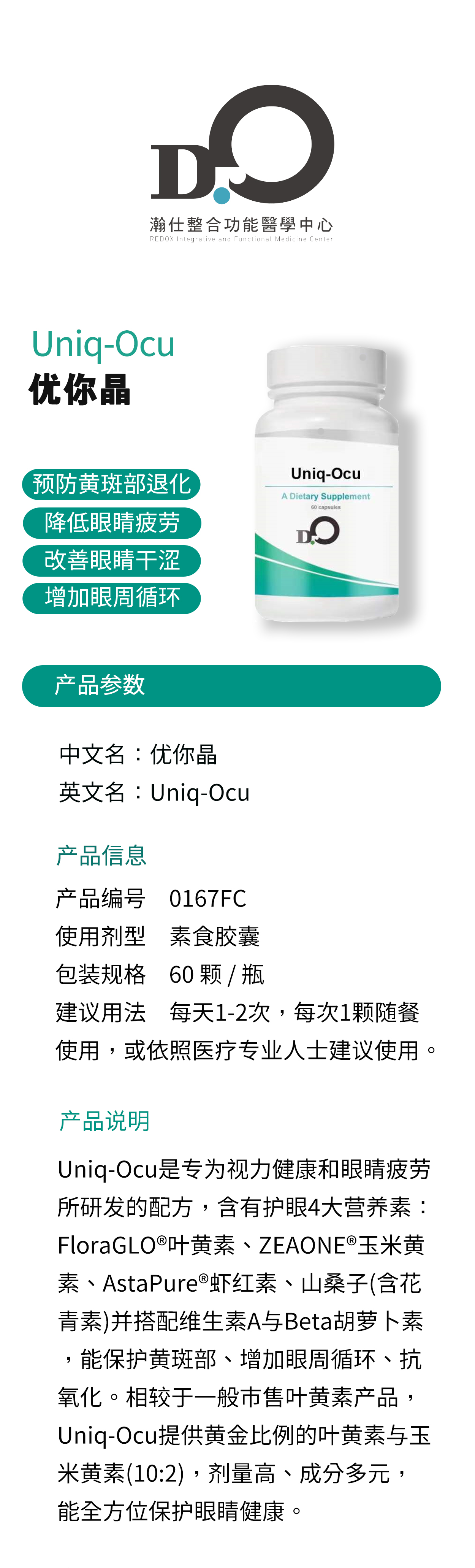 台湾瀚仕 优你晶 Uniq-Ocu #维生素A#专利叶黄素#虾青素【预售】