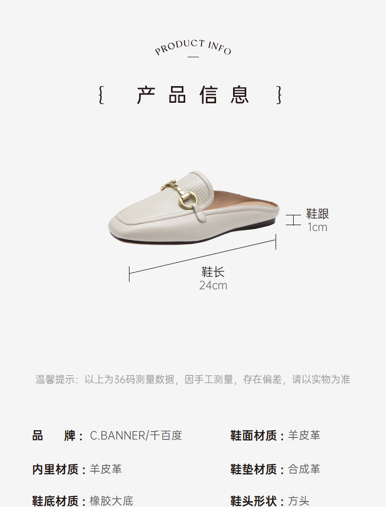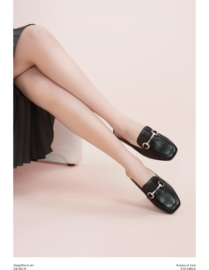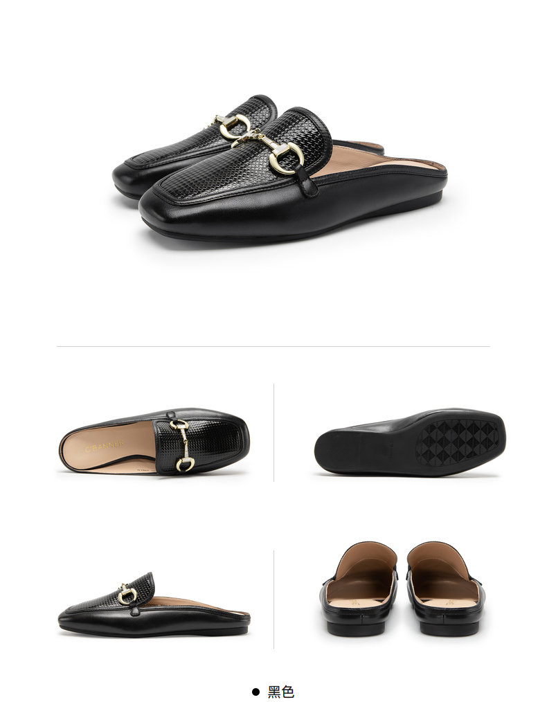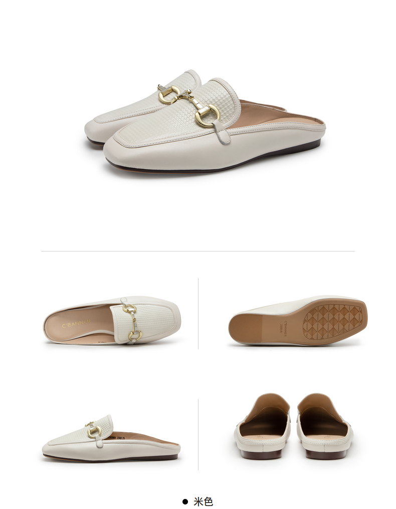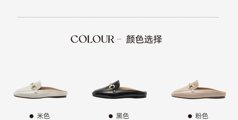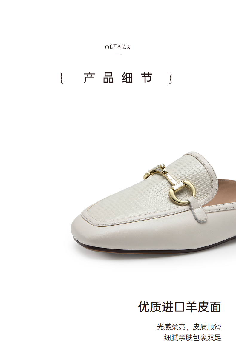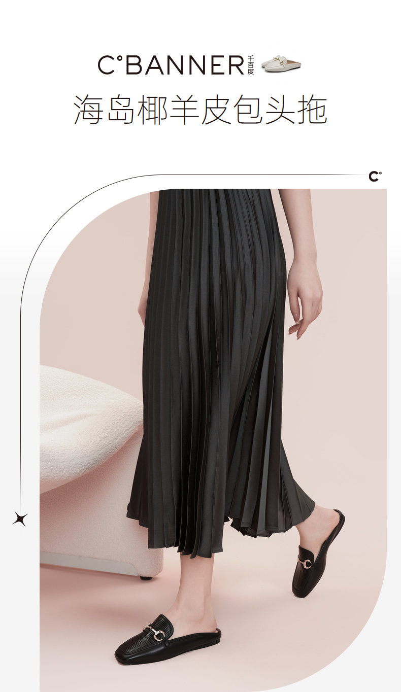 千百度女鞋时尚半凉鞋气质休闲平底羊皮单鞋A23273202