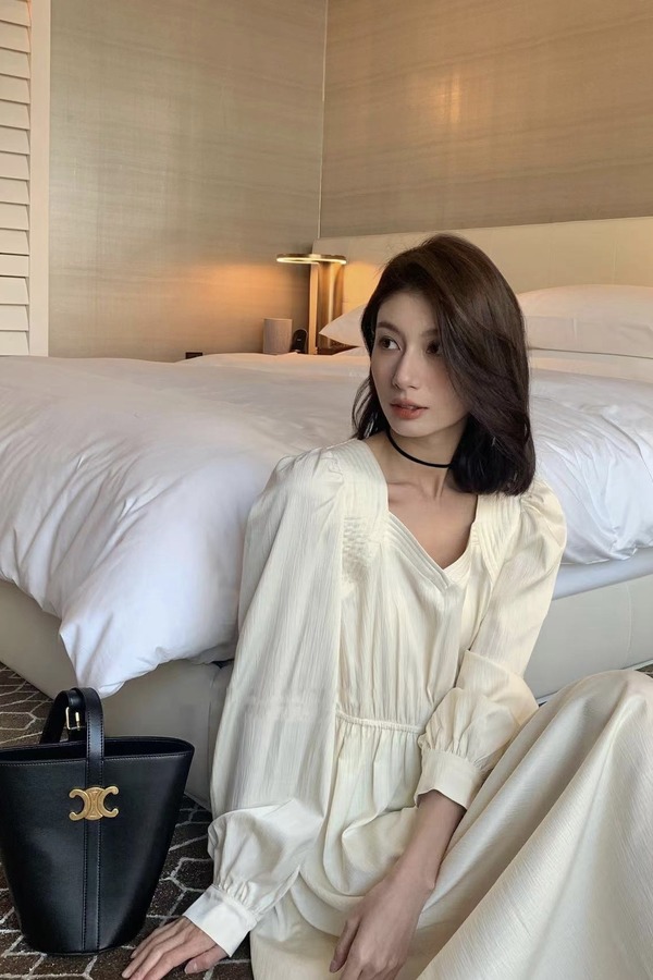 L.Fleuri 法式气质压褶连衣裙 17891
