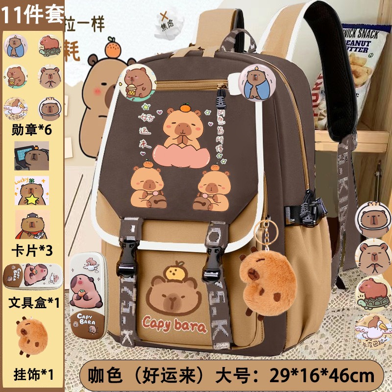 【孩子热爱款!全套更炫酷!】卡皮巴拉书包 一二三到六年级男女生轻便卡通儿童书包 大容量双肩包