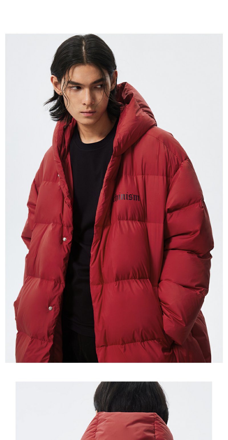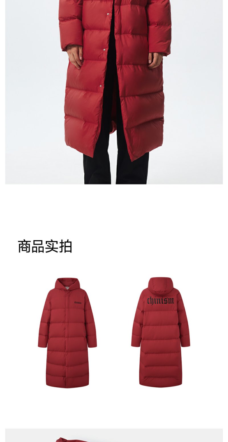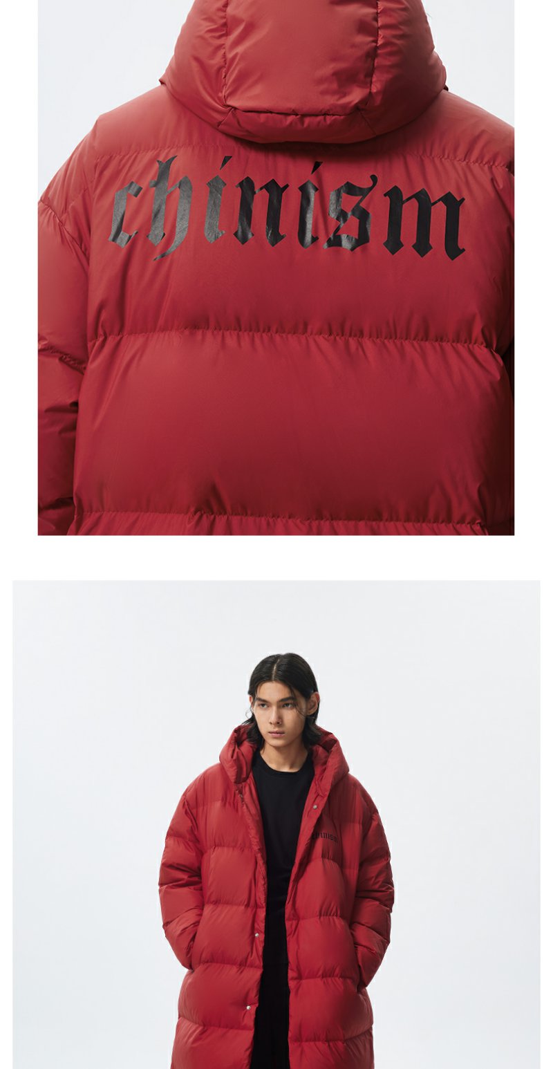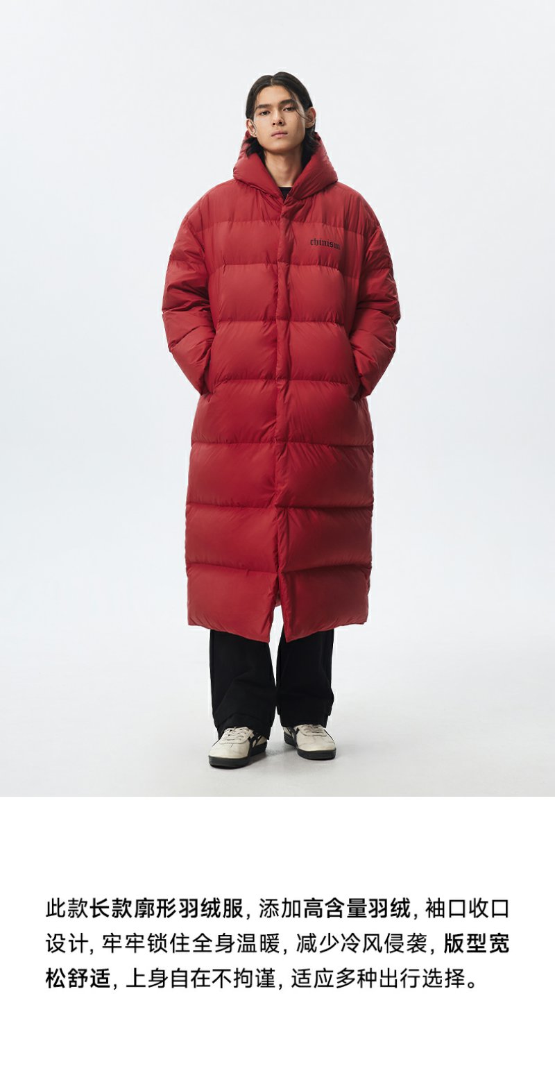CHINISM赤尘 红色过膝长款羽绒服男冬季加厚抗寒男士保暖外套