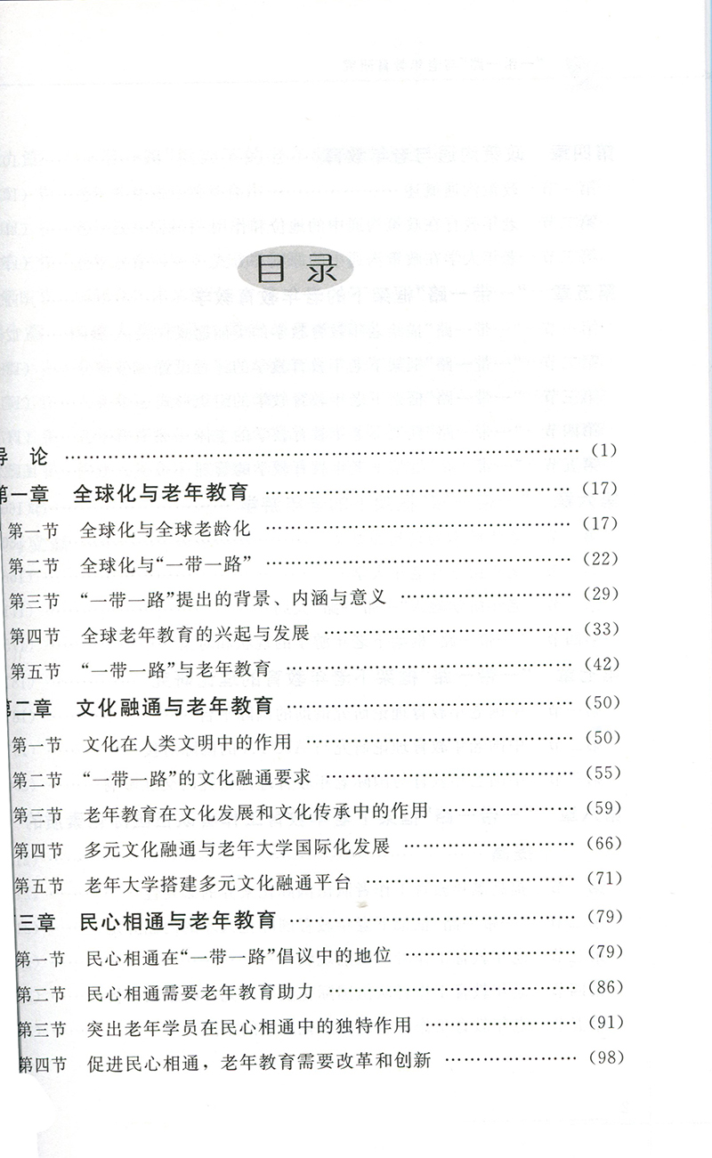 本书从“一带一路”倡议的丰富内涵中导出重大理念、原则、措施、主张等因素,对应研究老年教育(特别是老年大学)在相关问题上的影响、关联、互动、创新、发展。本书原则上不讨论国际经贸、投资和国际政治问题。 主要章节包括:全球化与老年教育、文化融合与老年教育、民心相通与老年教育、政策沟通与老年教育、 一带一路框架下的老年教育、一带一路框架下的老年游学、一带一路框架下老年教育理论研究、一带一路框架下老年大学国际合作、构建人类命运共同体与老年教育等。