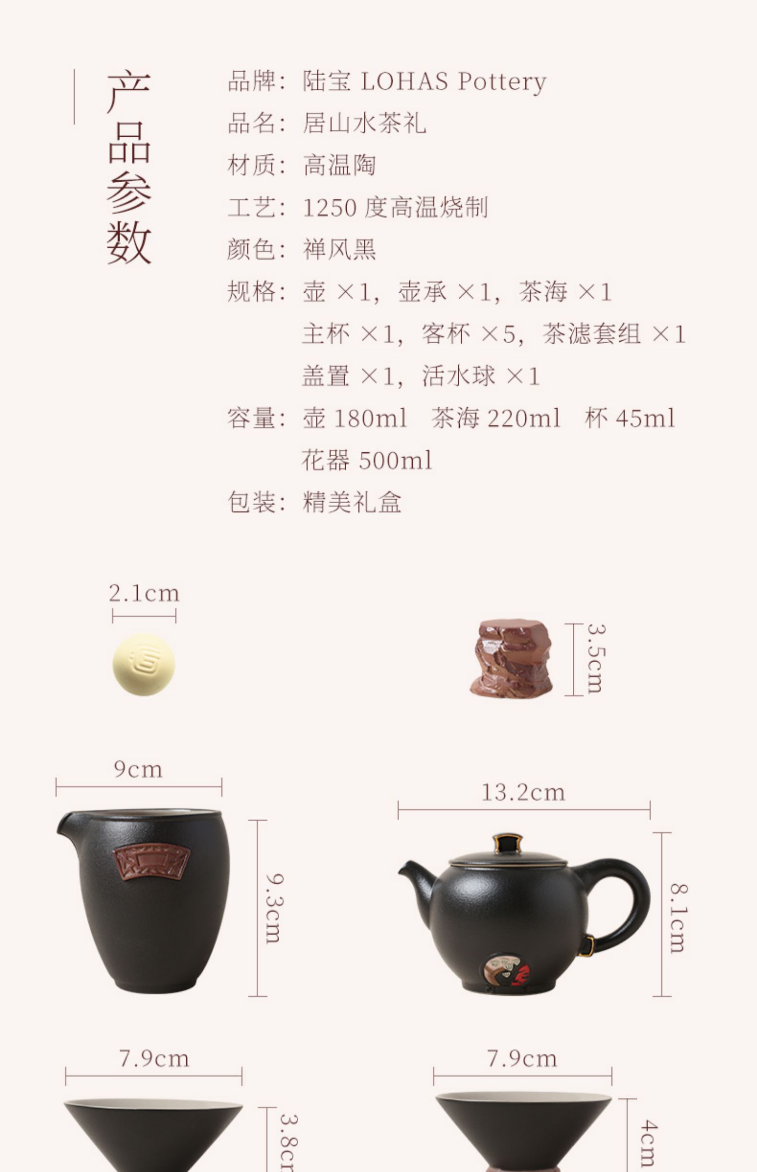 陆宝居山水茶礼禅风黑轻奢茶具套装礼盒装商务送礼陶瓷功夫茶具套组