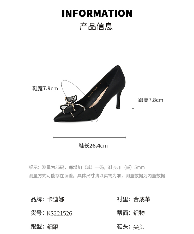 卡迪娜2022年春季新款细跟高跟婚宴时装鞋单鞋KS221526