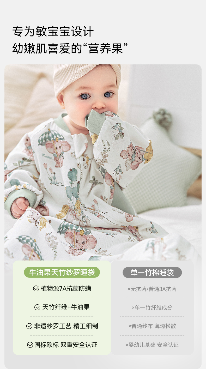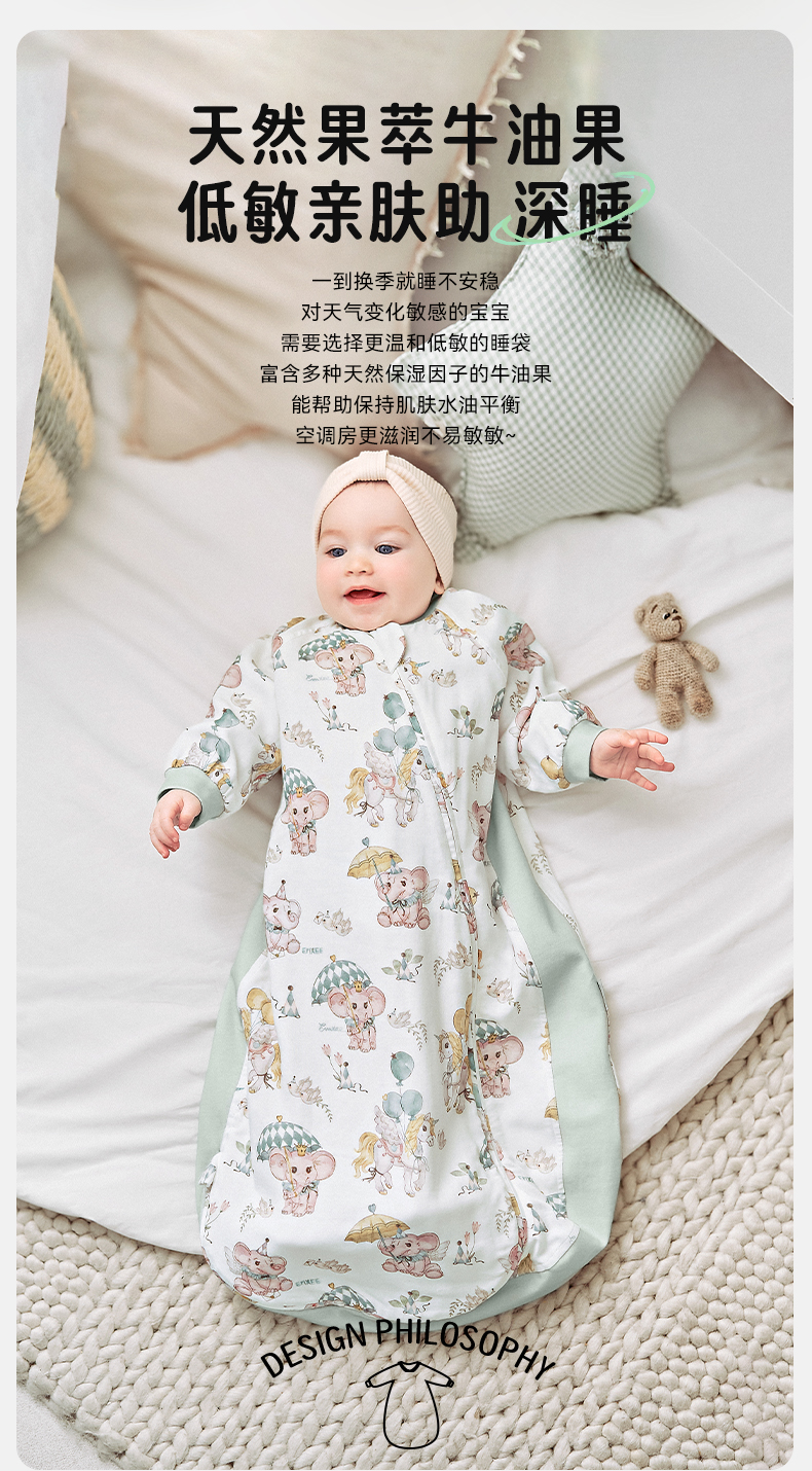 【宝宝安睡】嫚熙婴儿一体式睡袋牛油果纱罗宝宝四季儿童防踢被
