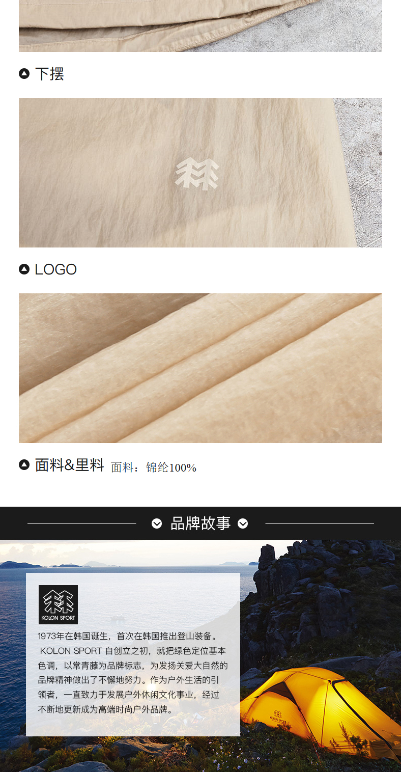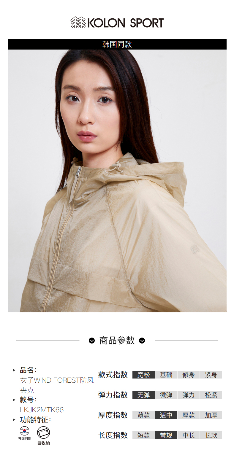 KOLONSPORT可隆皮肤衣女款可收纳外套防风夹克轻量户外休闲衣风衣LKJK2MTK66