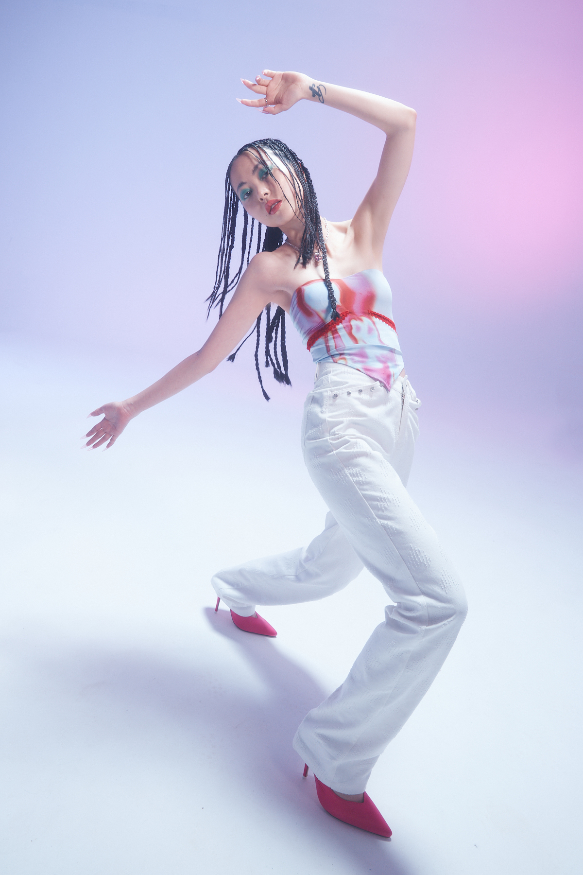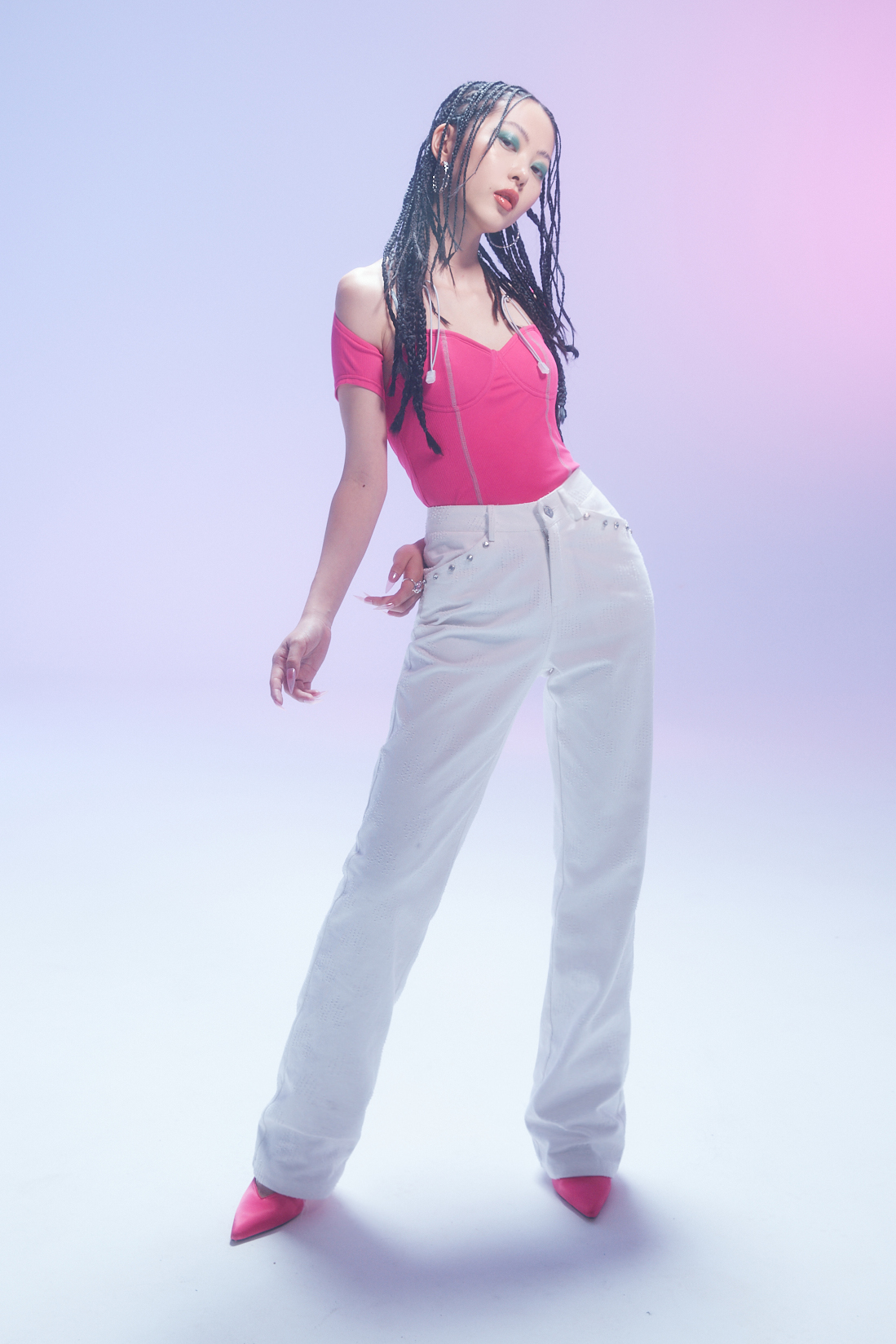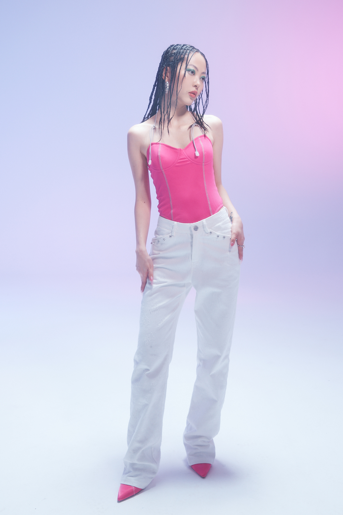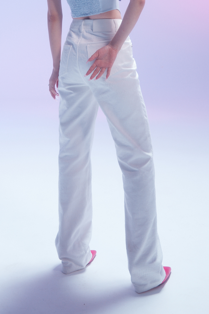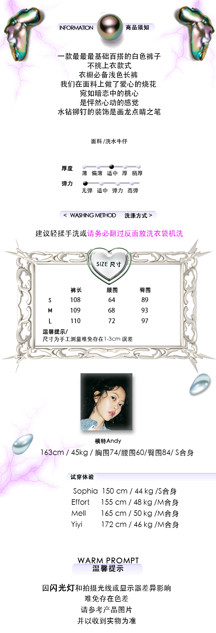 EhK 显腿长 白色爱心提花 水钻牛仔裤经典百搭长裤休闲裤