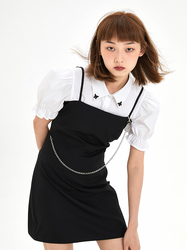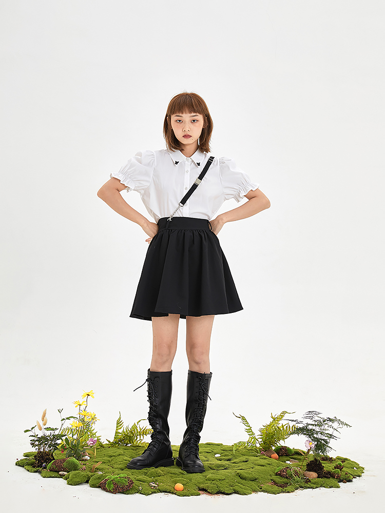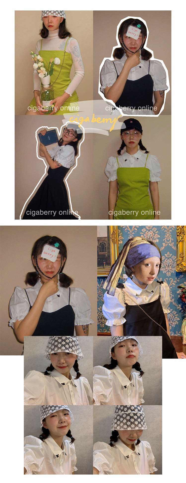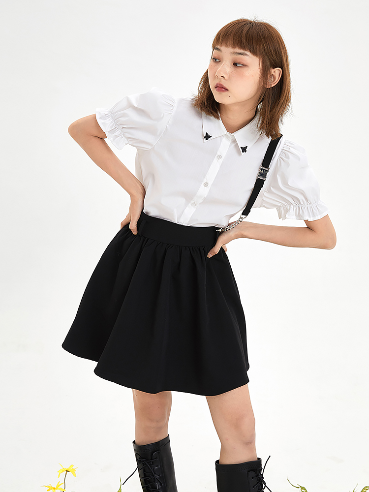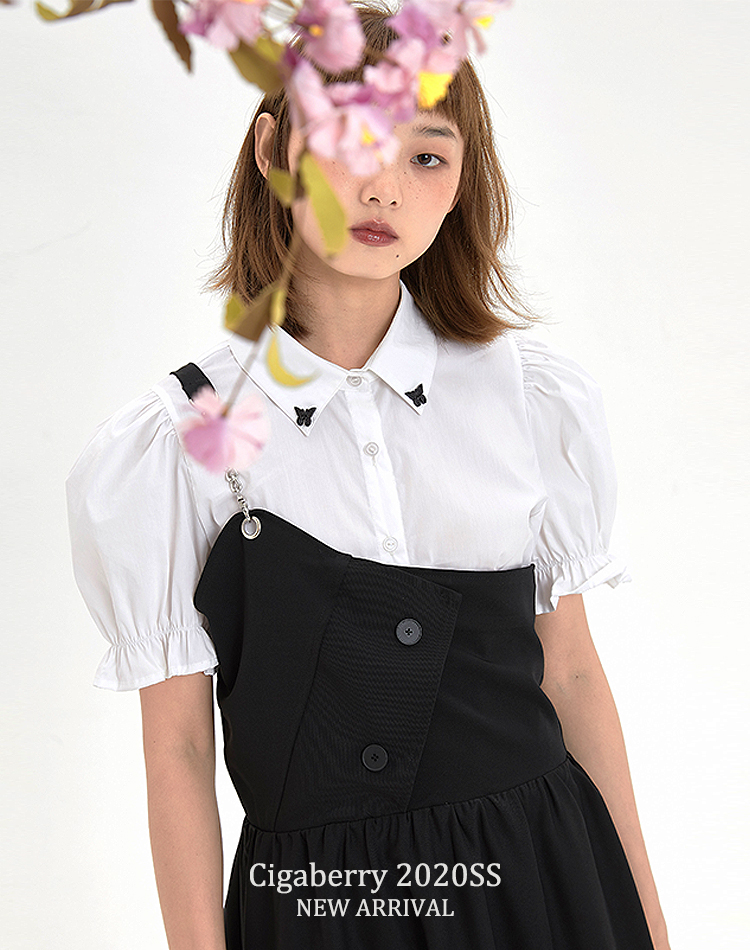 Cigaberry 2020夏季新款少女荷叶边百搭白色法式泡泡袖衬衫纯棉