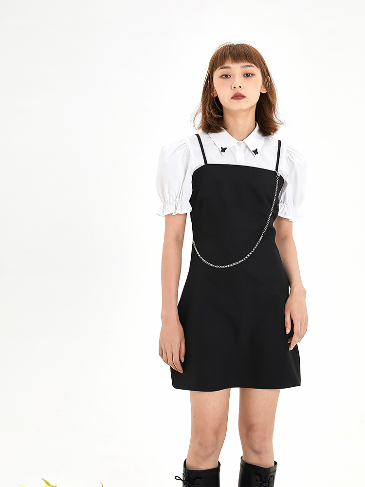 TERRAINCOGNITA新款拉链侧包装饰宽松百搭短袖舒适轻薄刺绣衬衫