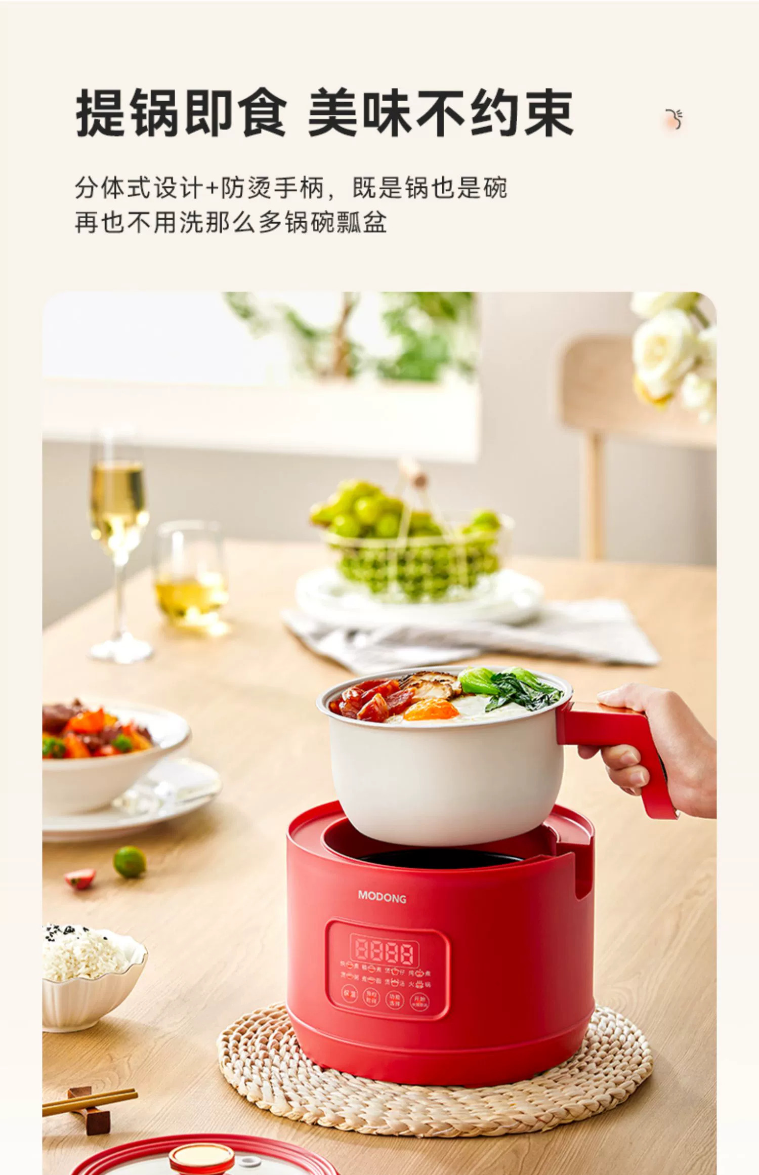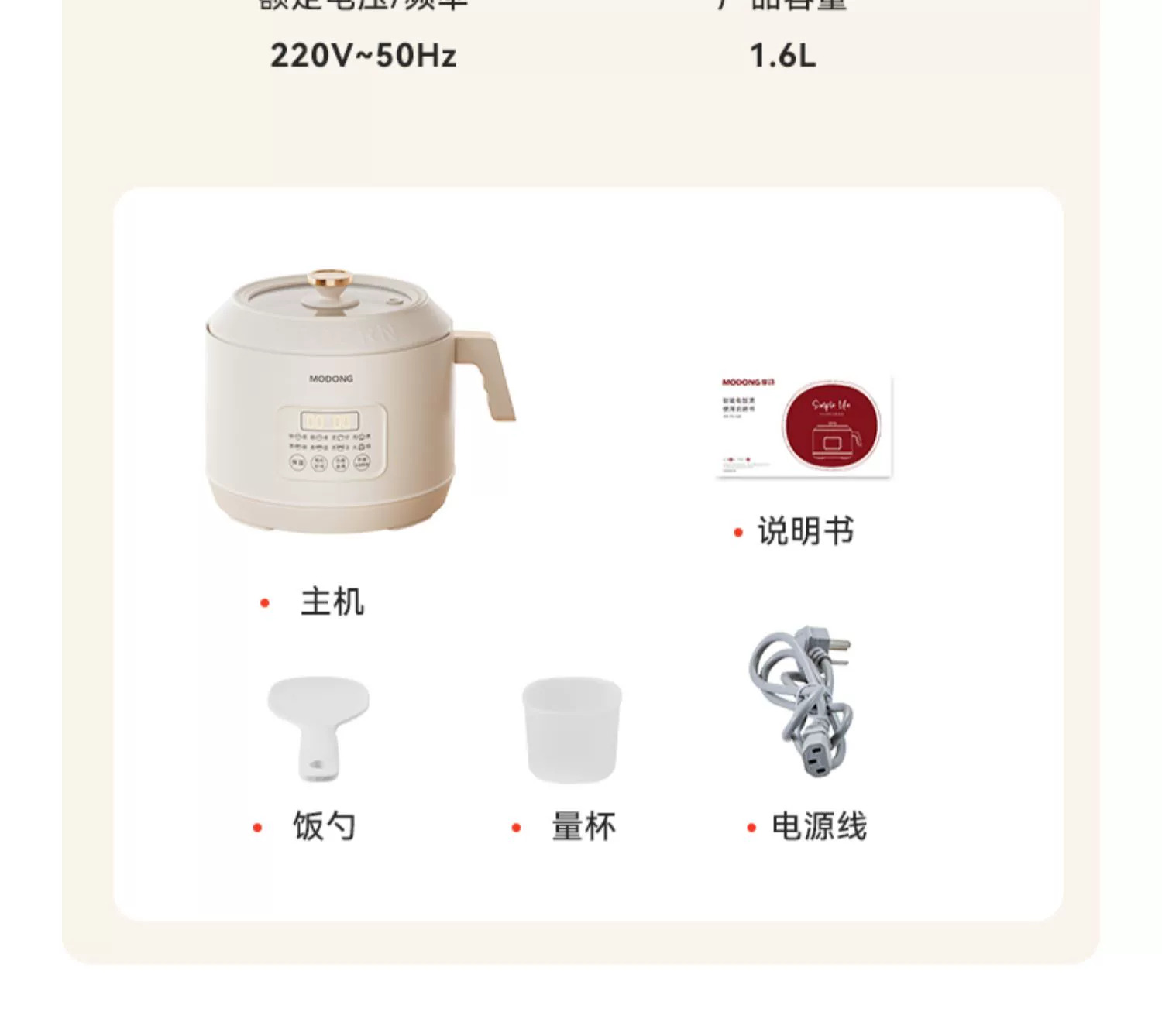 摩动电饭煲家用一人多功能1.6升1-2一3人小型迷你宿舍煮饭电饭锅