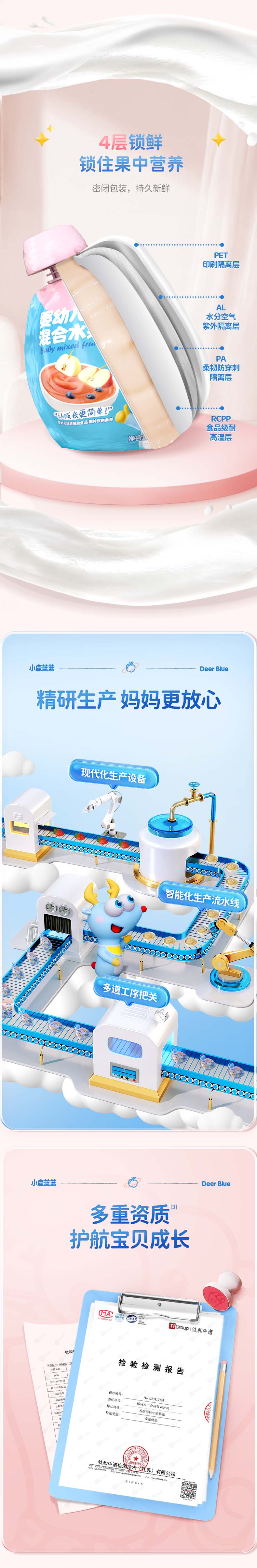 - 小鹿蓝蓝始终致力于为主人提供更优质、高性价比的产品、服务和体验,共同打造婴童零食生态圈,提升母婴行业的国货自信,守护和陪伴新一代儿童健康、快乐地成长。