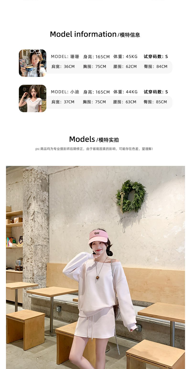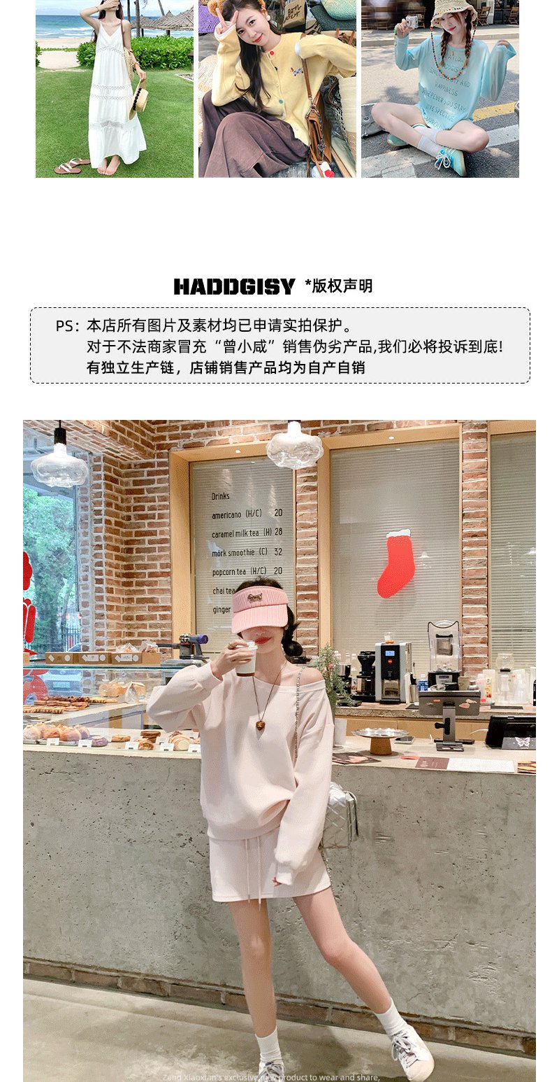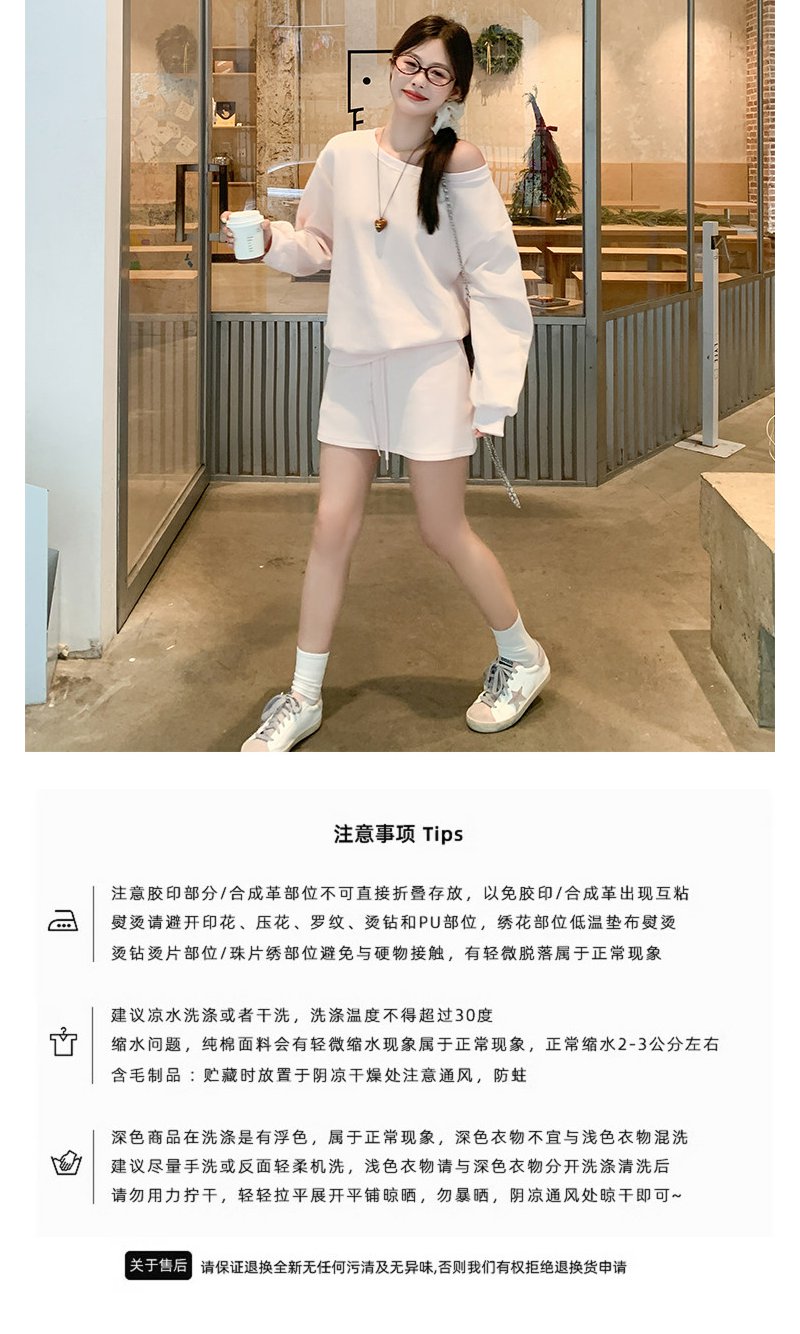 <曾小咸推荐>3.5现货秒杀 !微信超特价!韩系斜肩露肩卫衣+短裙套装 日常239.99 立减120 秒杀119.99!!