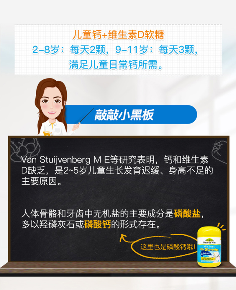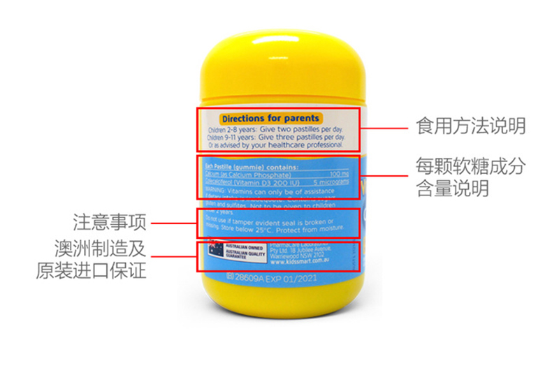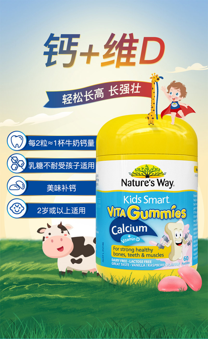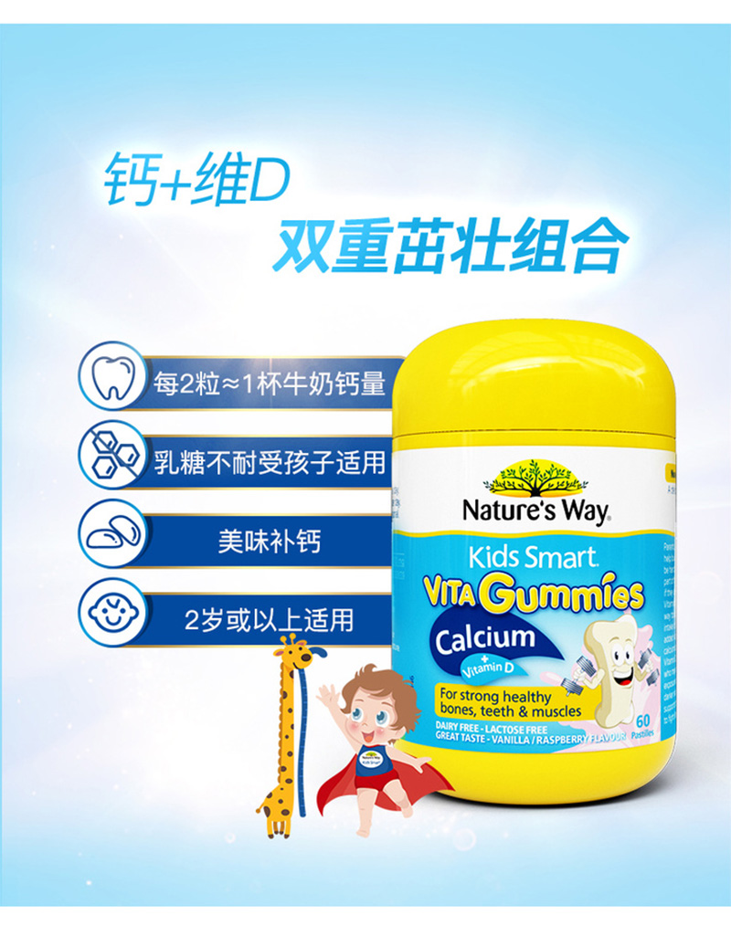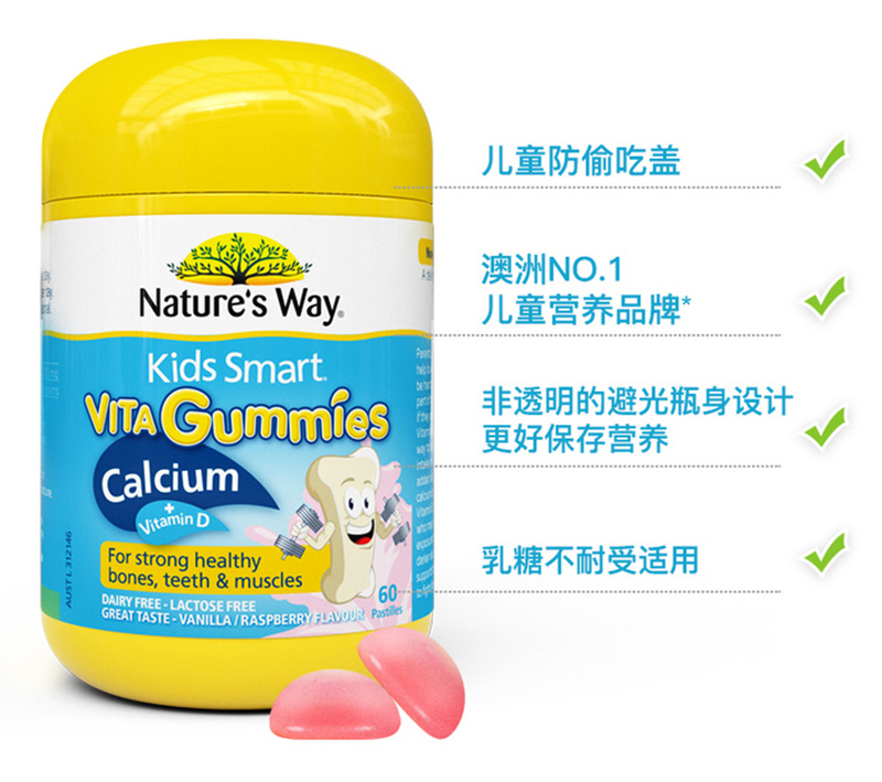 佳思敏 儿童钙片维生素D香草味60粒