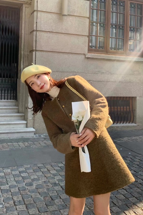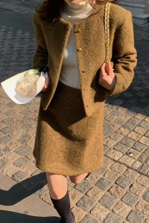 Le Malene 气质圆领咖啡色小香风外套 17450