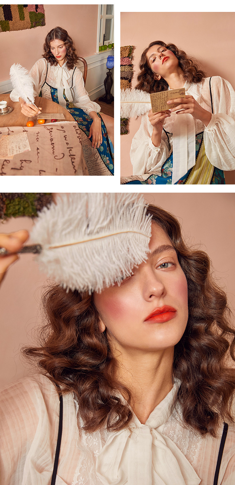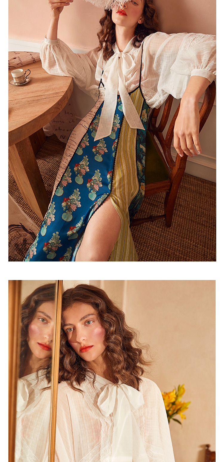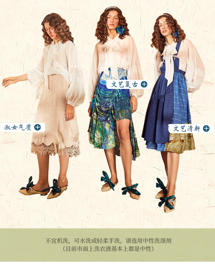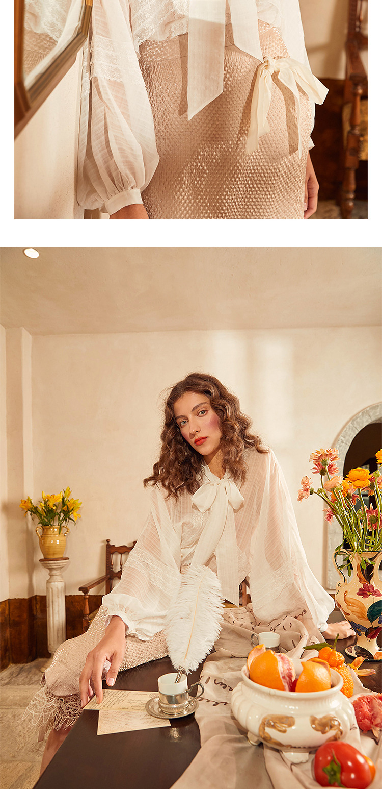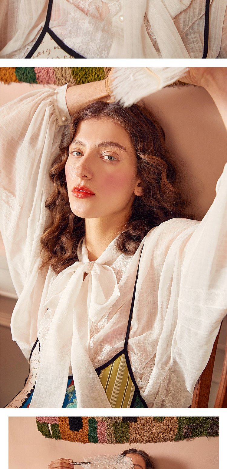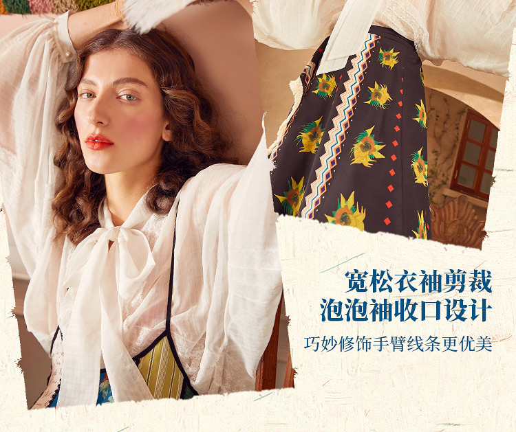 两三事梵高系列与灵魂游荡春夏雪纺衫女蕾丝打底衫灯笼袖薄款洋气