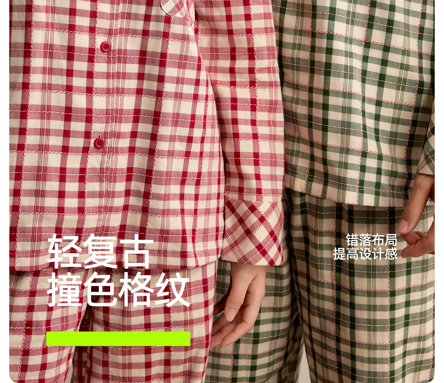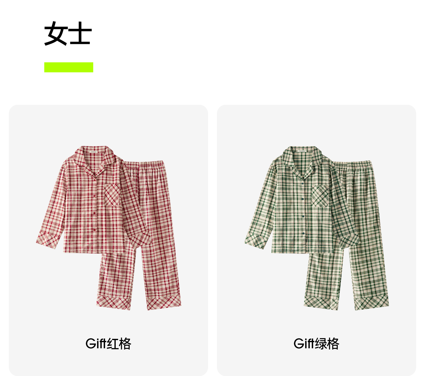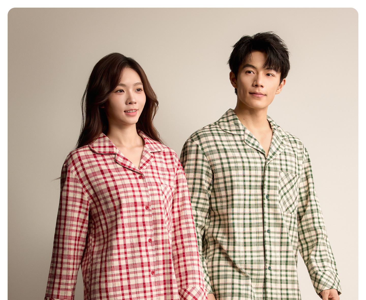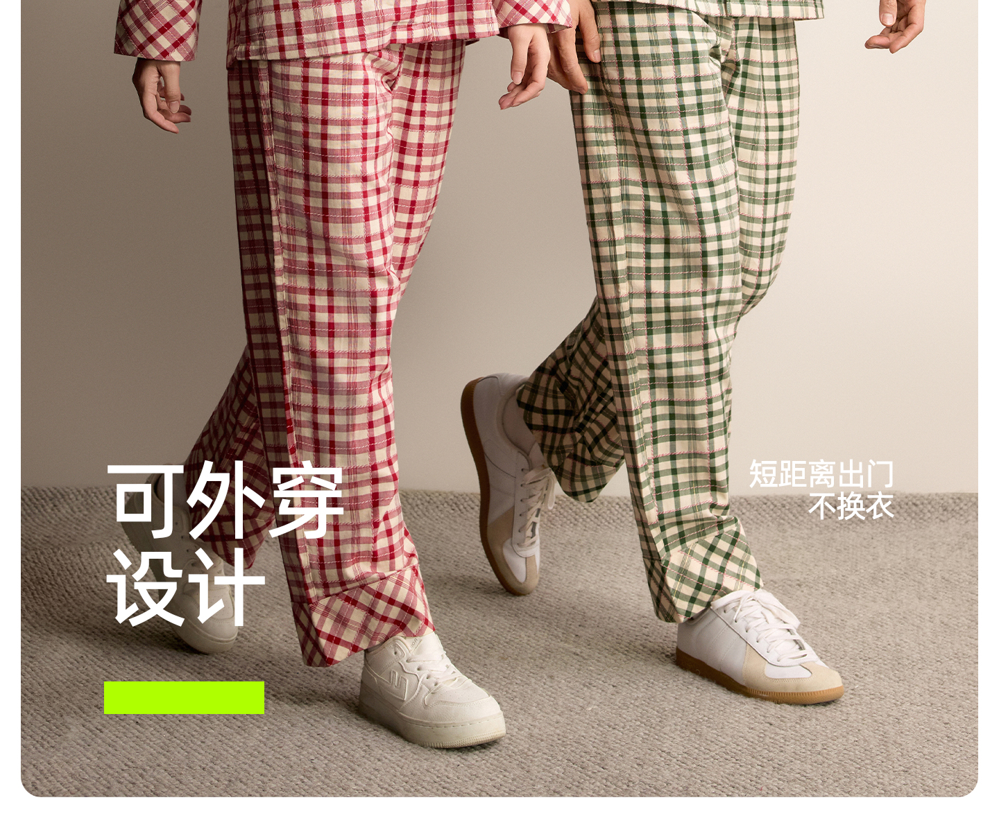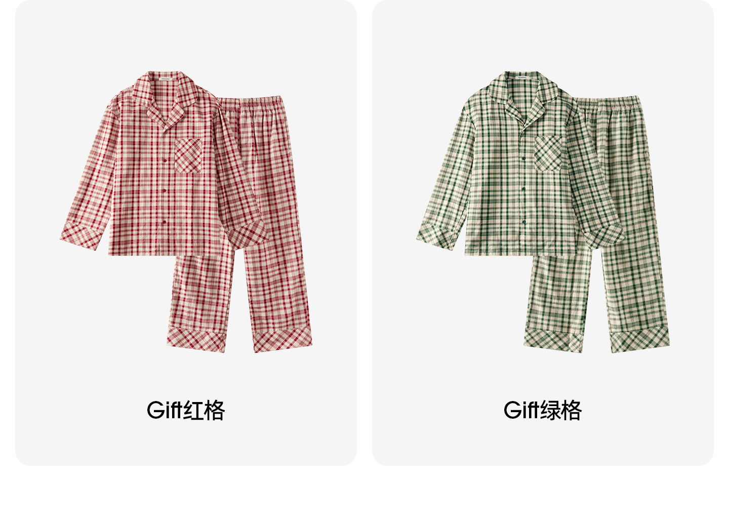 有棵树纯棉双层纱格子情侣款家居服套装-P1131