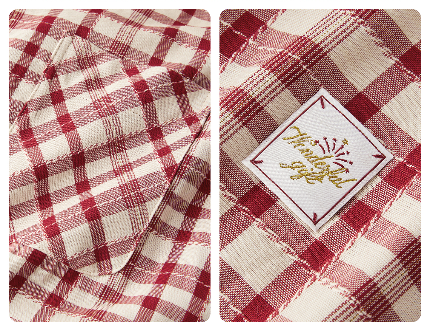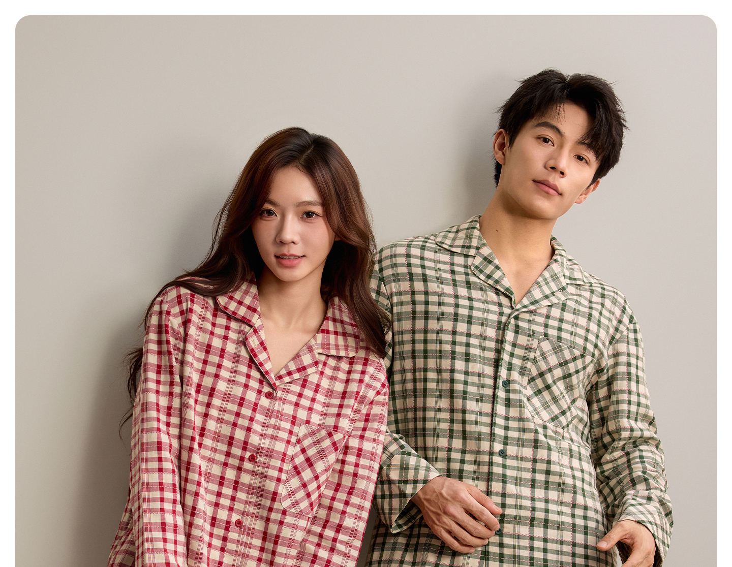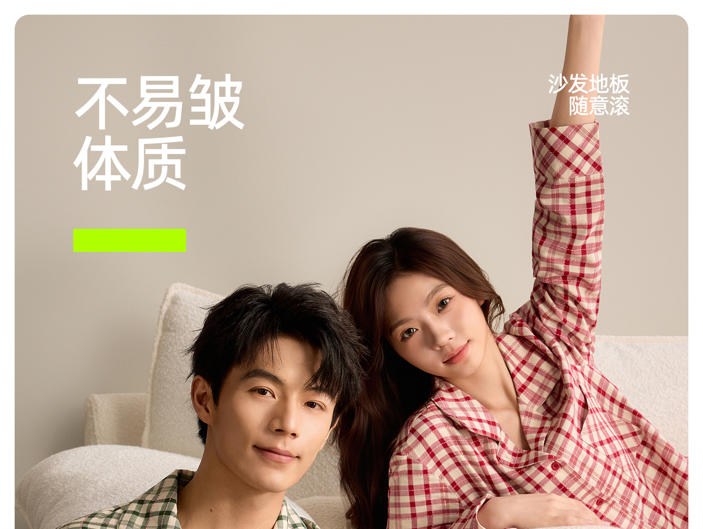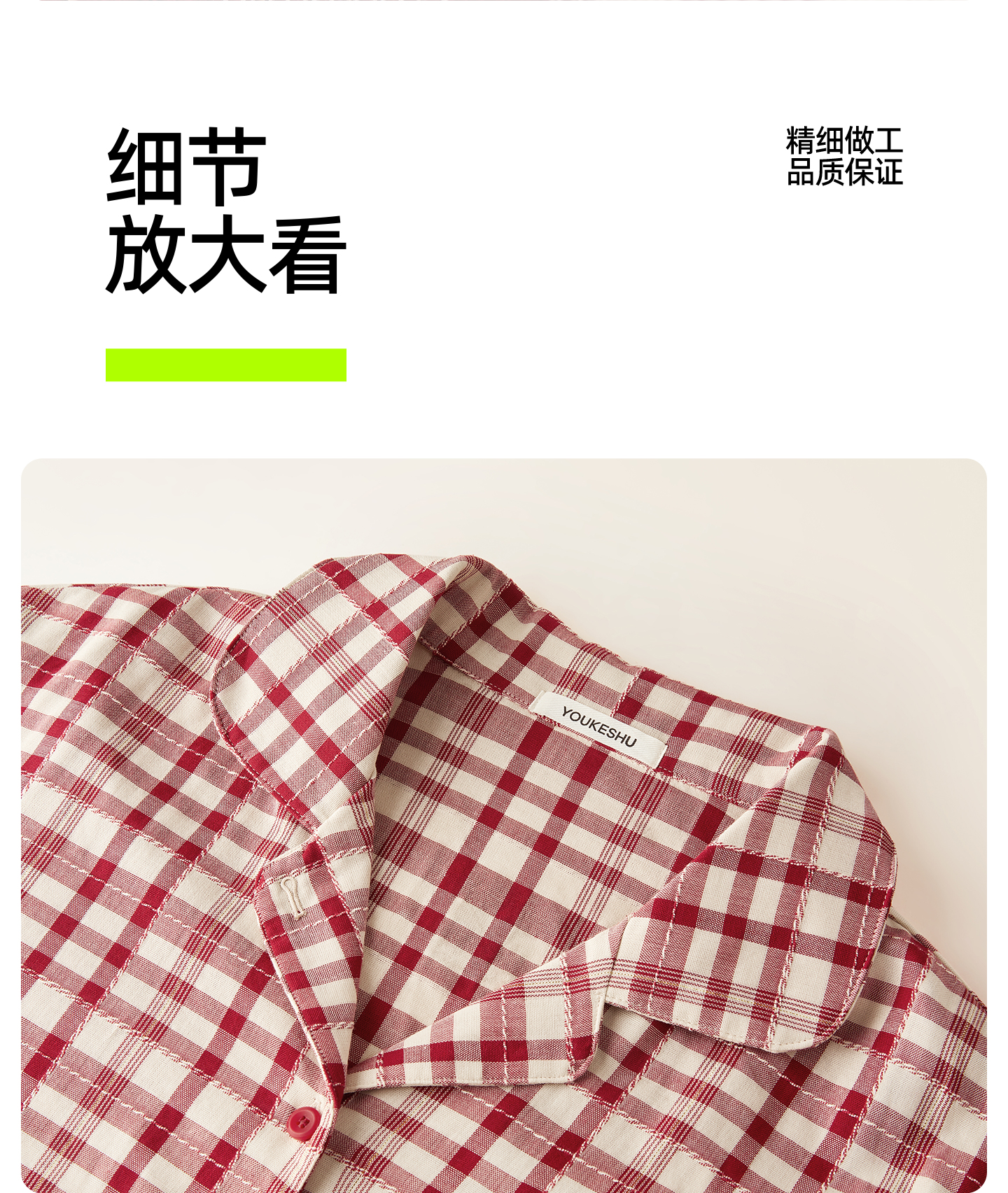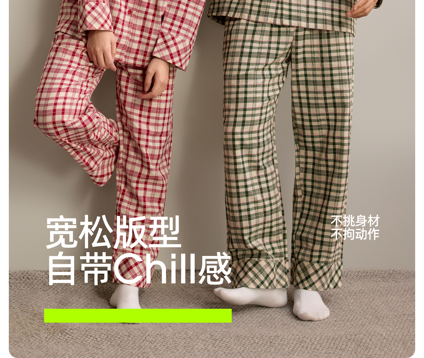 有棵树纯棉双层纱格子情侣款家居服套装-P1131