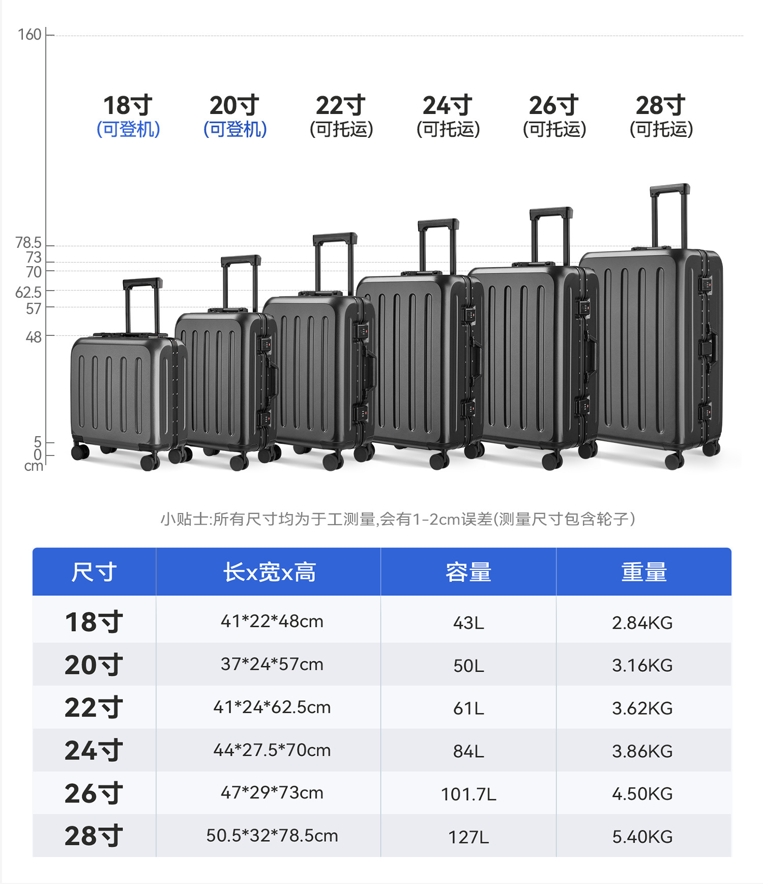 自然醒18寸铝框小行李箱拉杆箱pc材质旅行箱免托运20超轻便迷你登机箱男YS903
