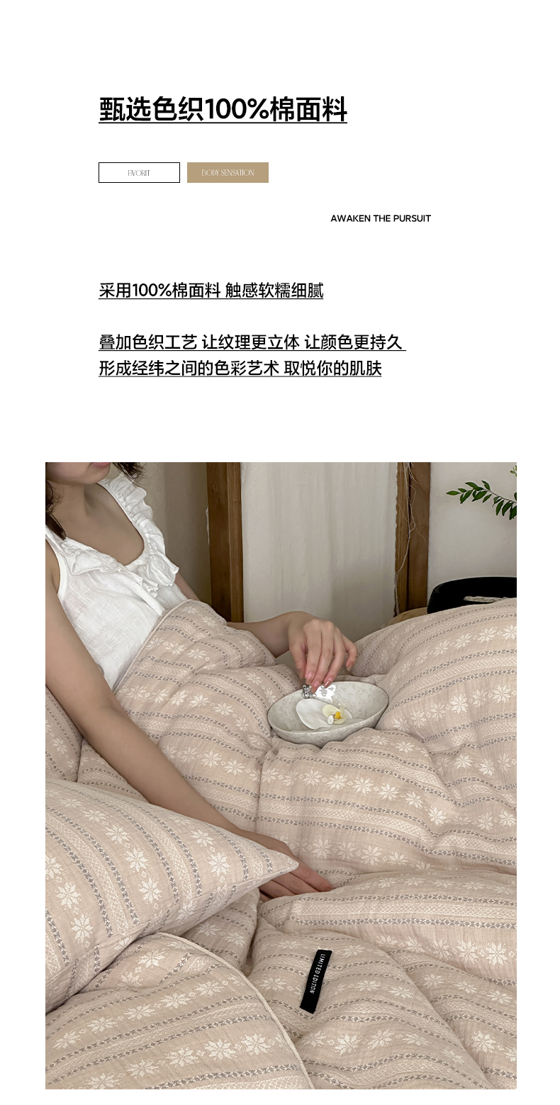 自然醒秋冬款环保纯棉磨毛四件套床单被套枕套床上用品秋冬四季通用套件KY