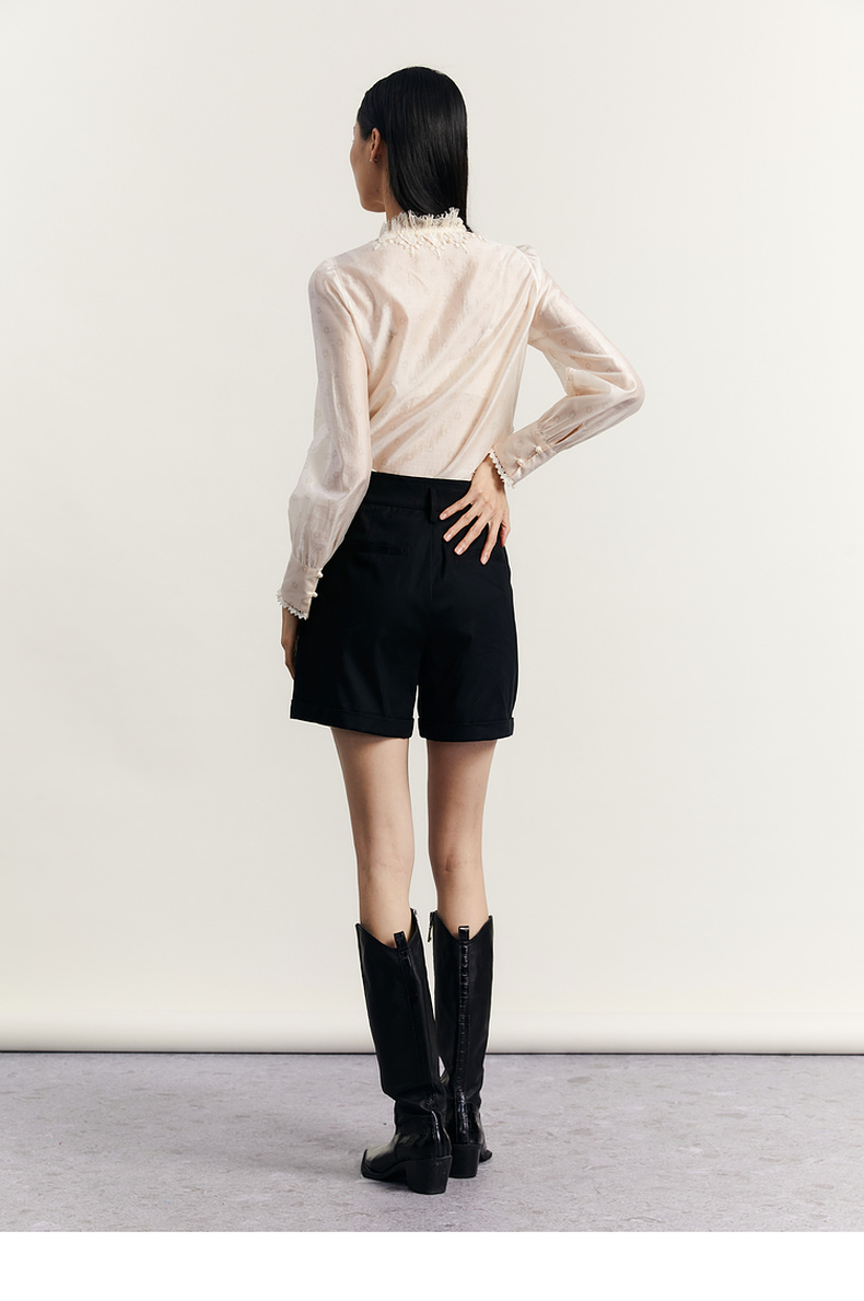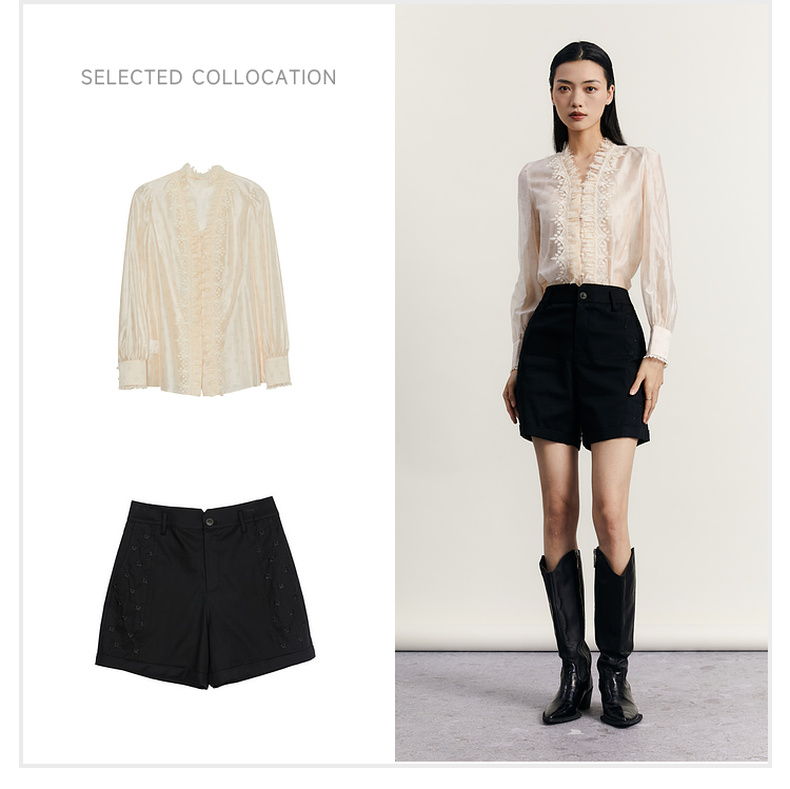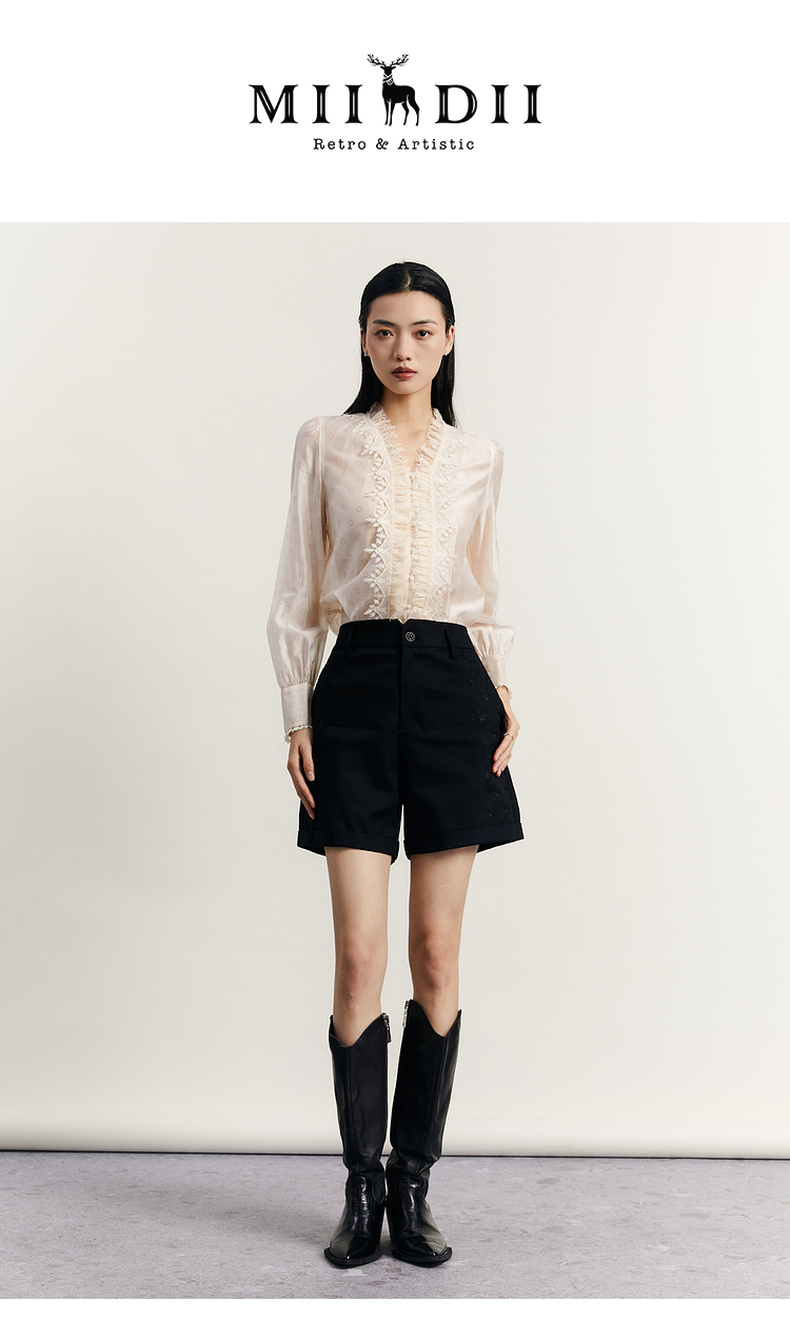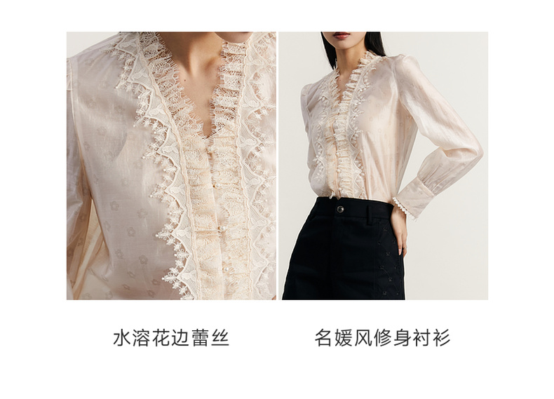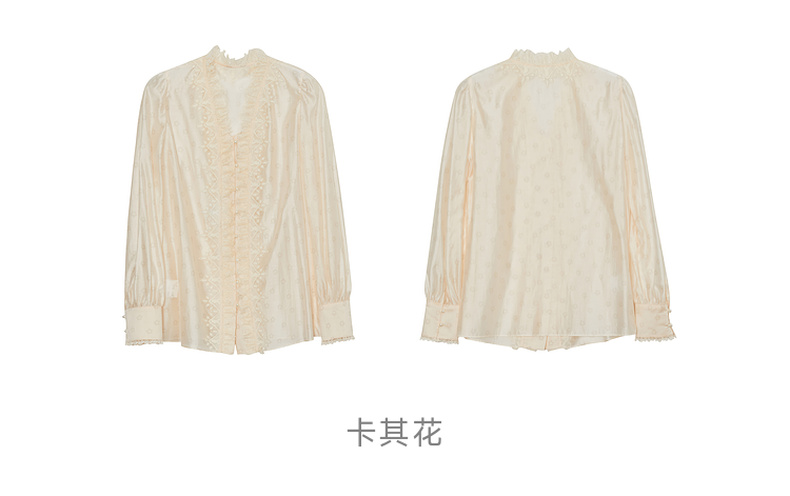 谜底通勤衬衫长袖女2023秋季新款复古浪漫V领宽松衬衣女233MC0989