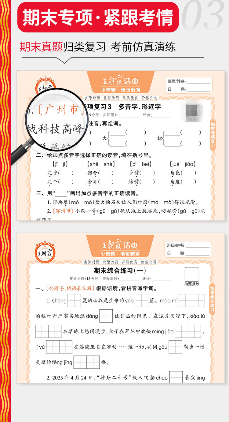 王朝霞活页默写计算一二三四五六年级上下册同步练习册一课一练语文人教版默写数学北师大版计算题