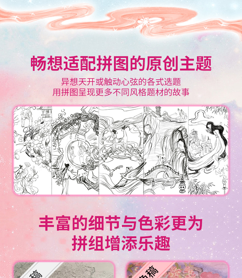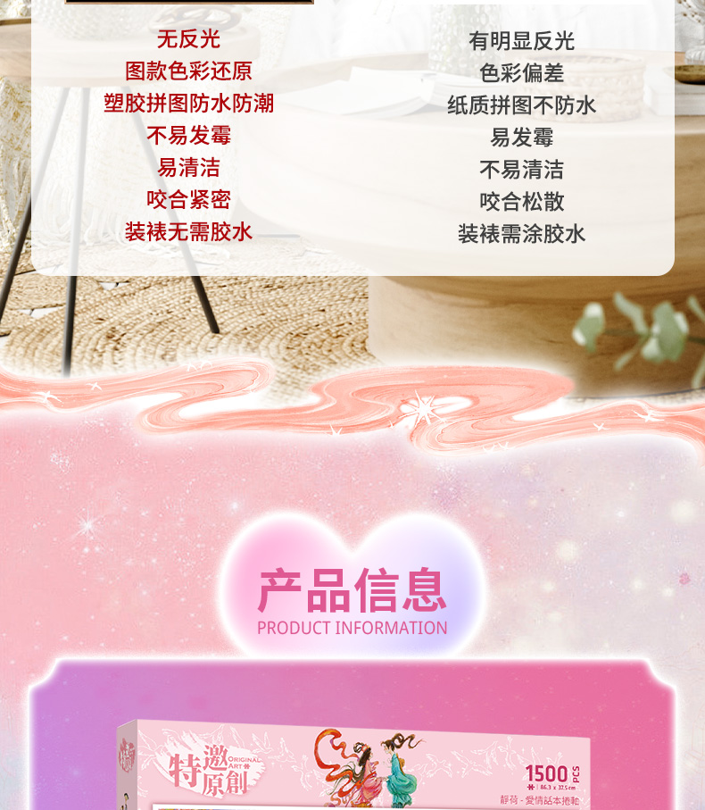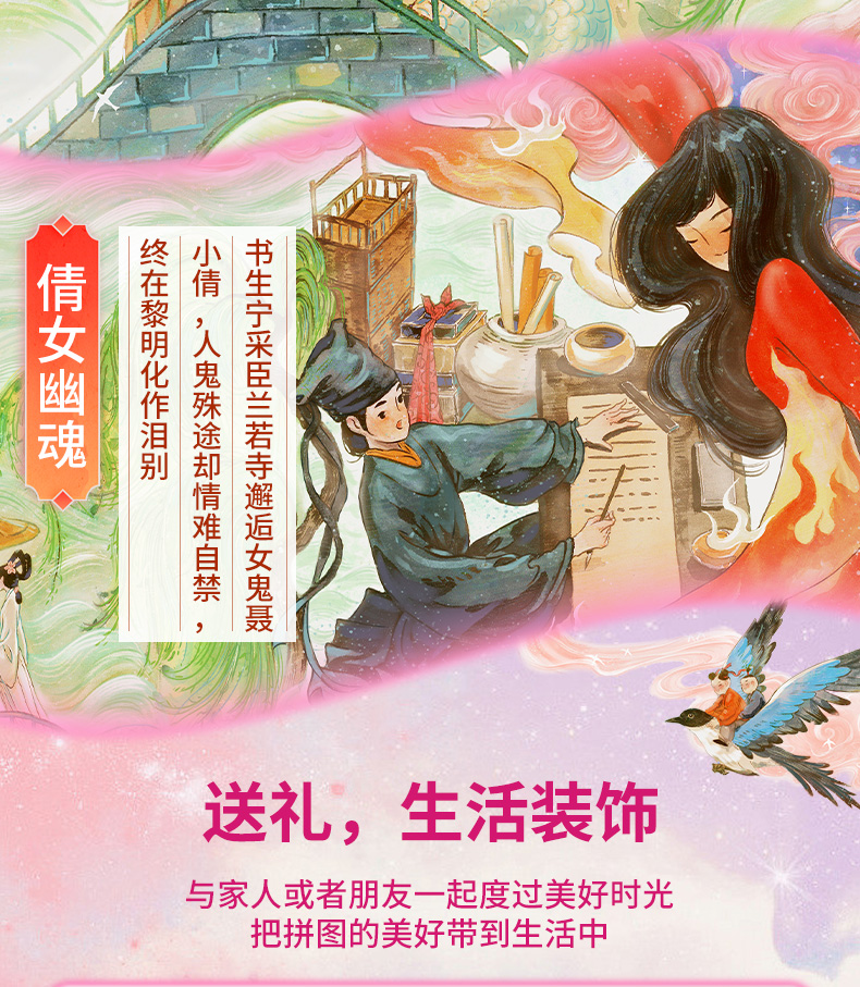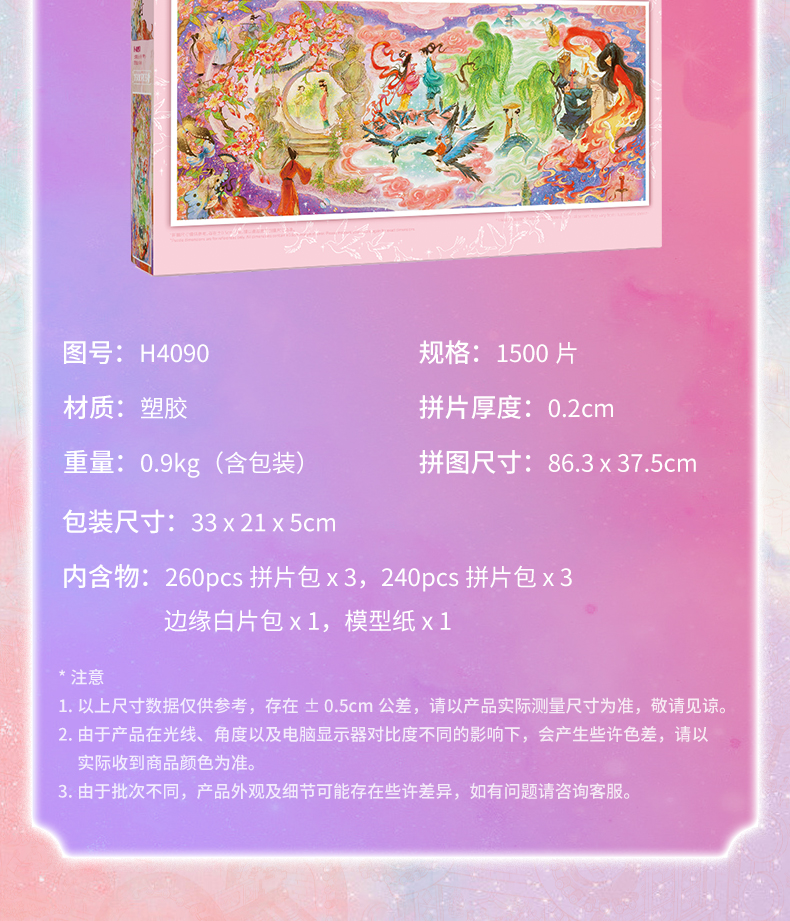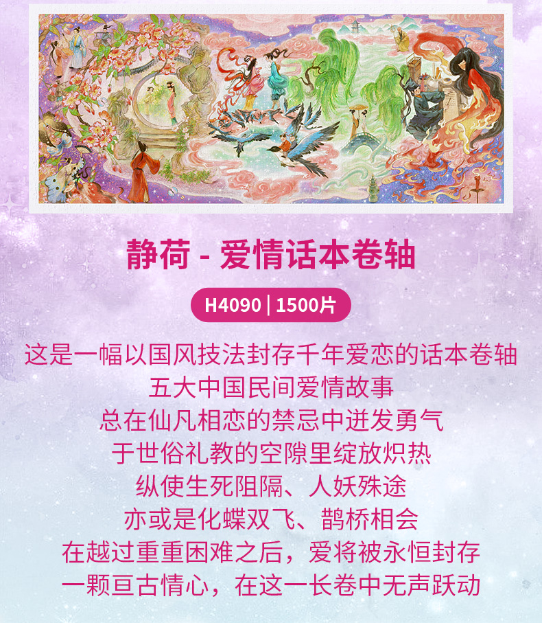 1500片 平面塑料拼图 H4090 全景长版拼图-静荷-爱情话本卷轴