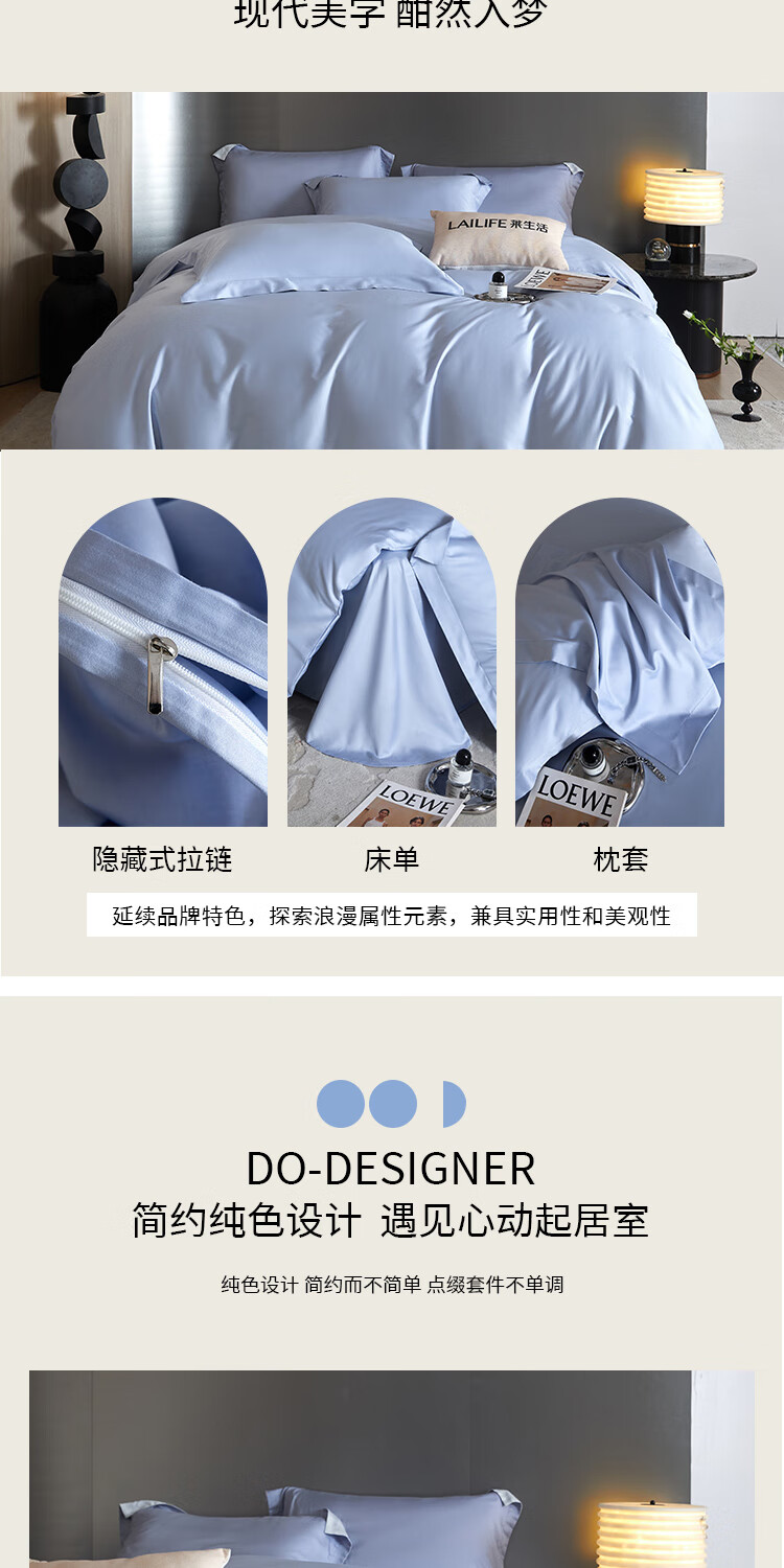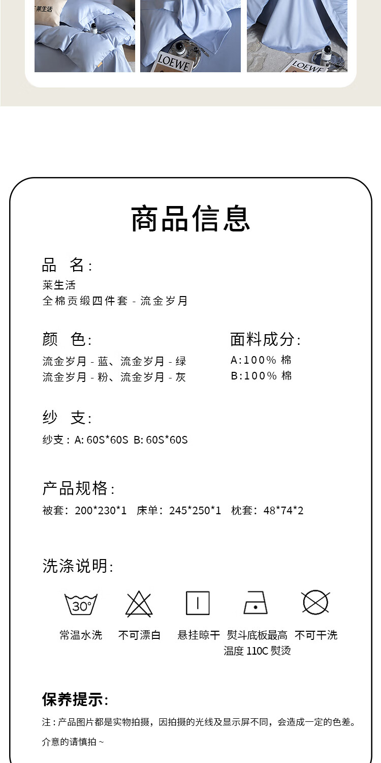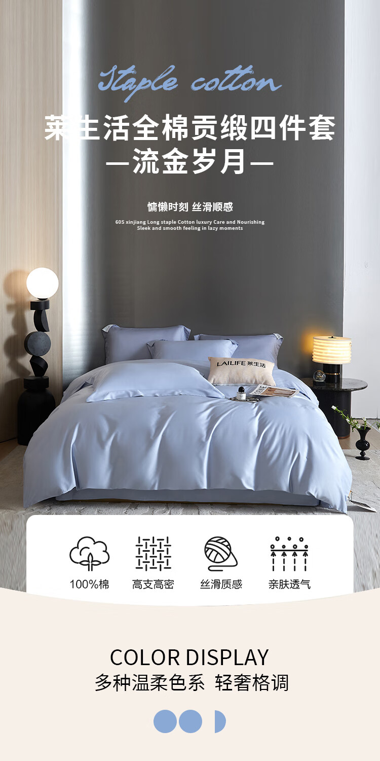 莱生活 全棉贡缎四件套-流金岁月 200*230cm