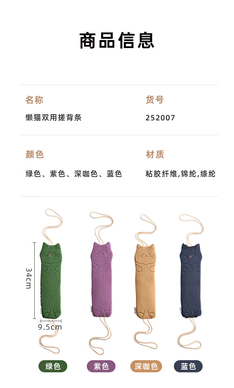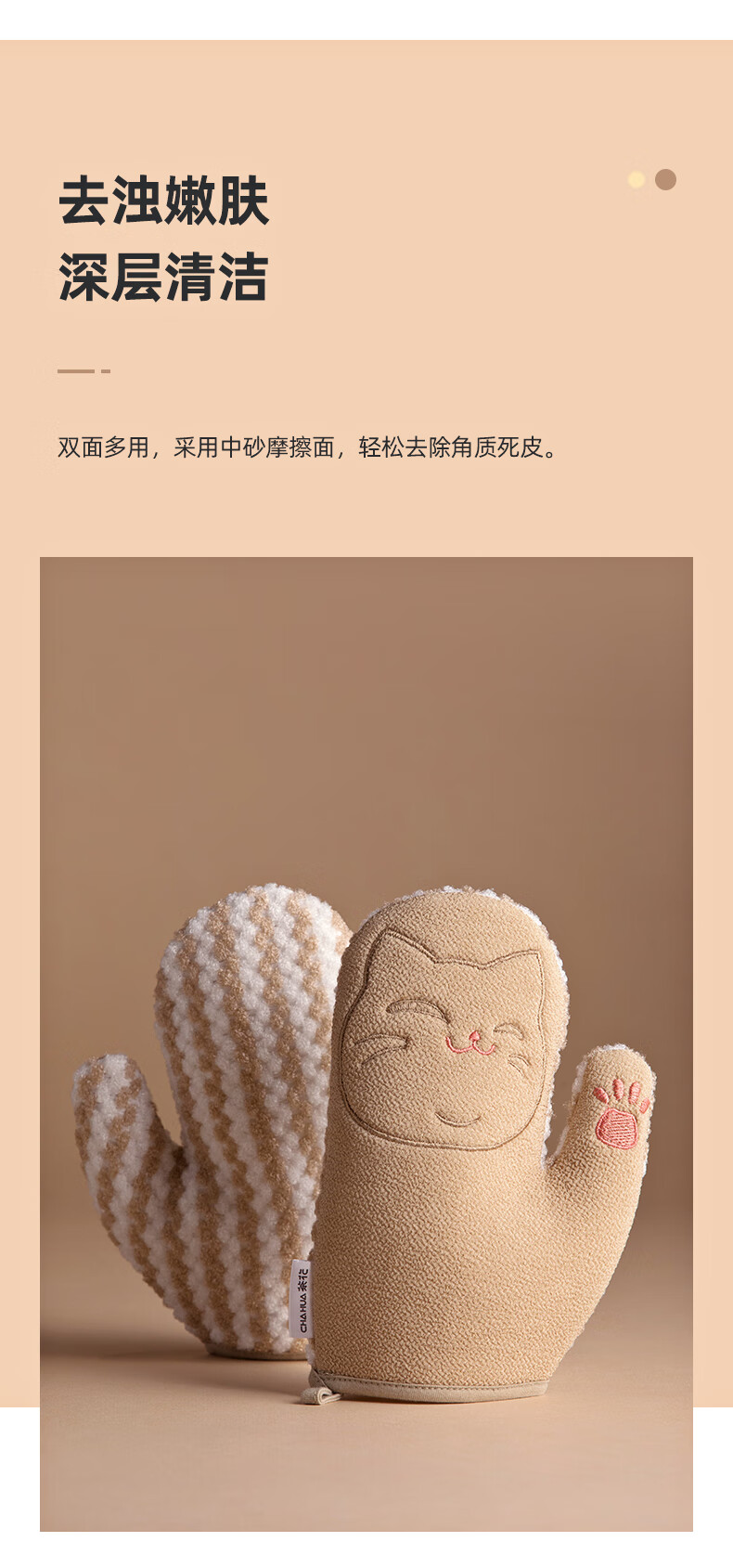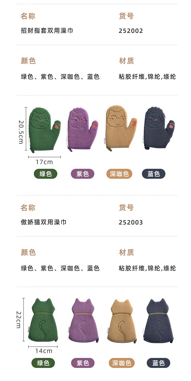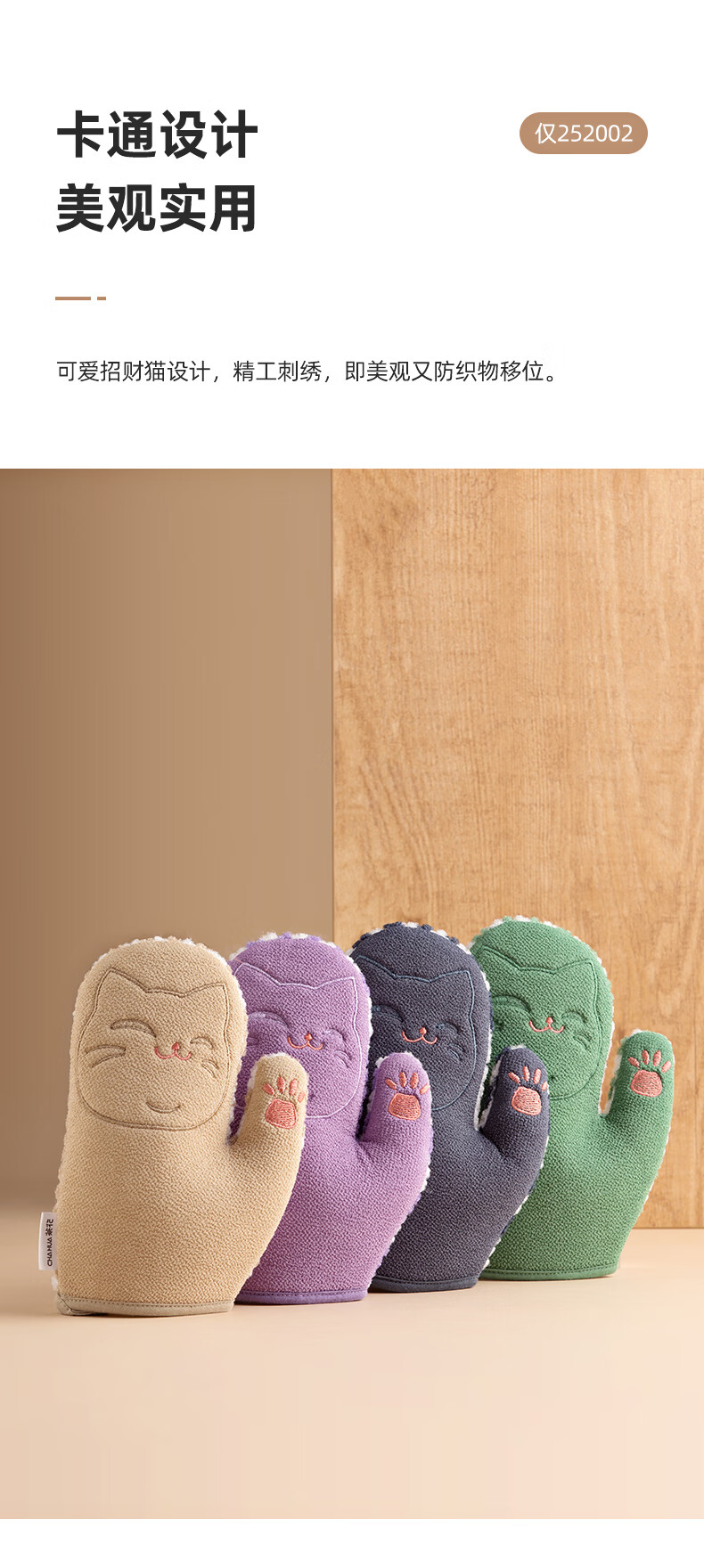 茶花 252003傲娇猫双用澡巾 2个装(紫色+咖色)