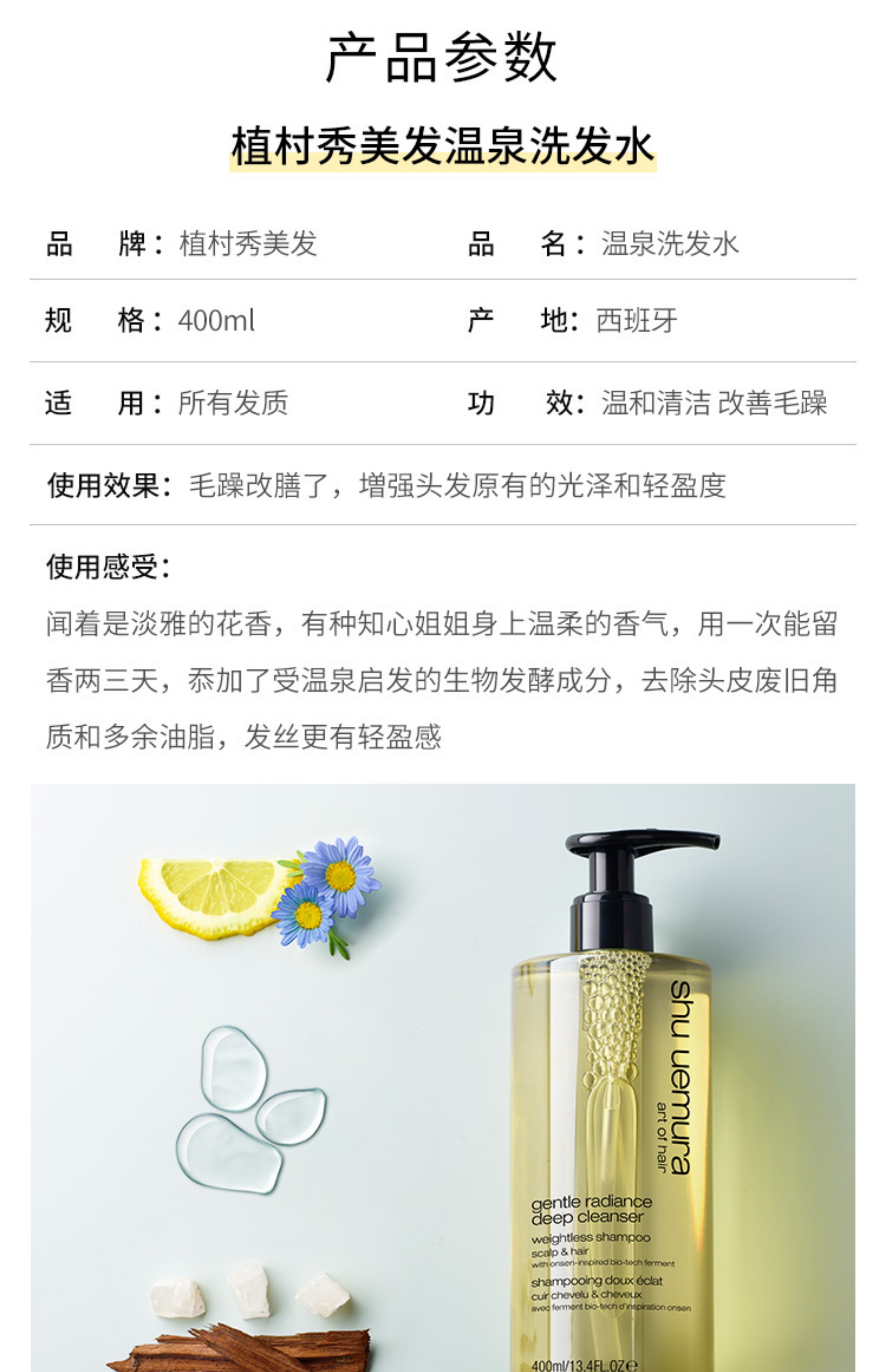 【保税仓】植村秀美发 温泉净澈洗发水400ml