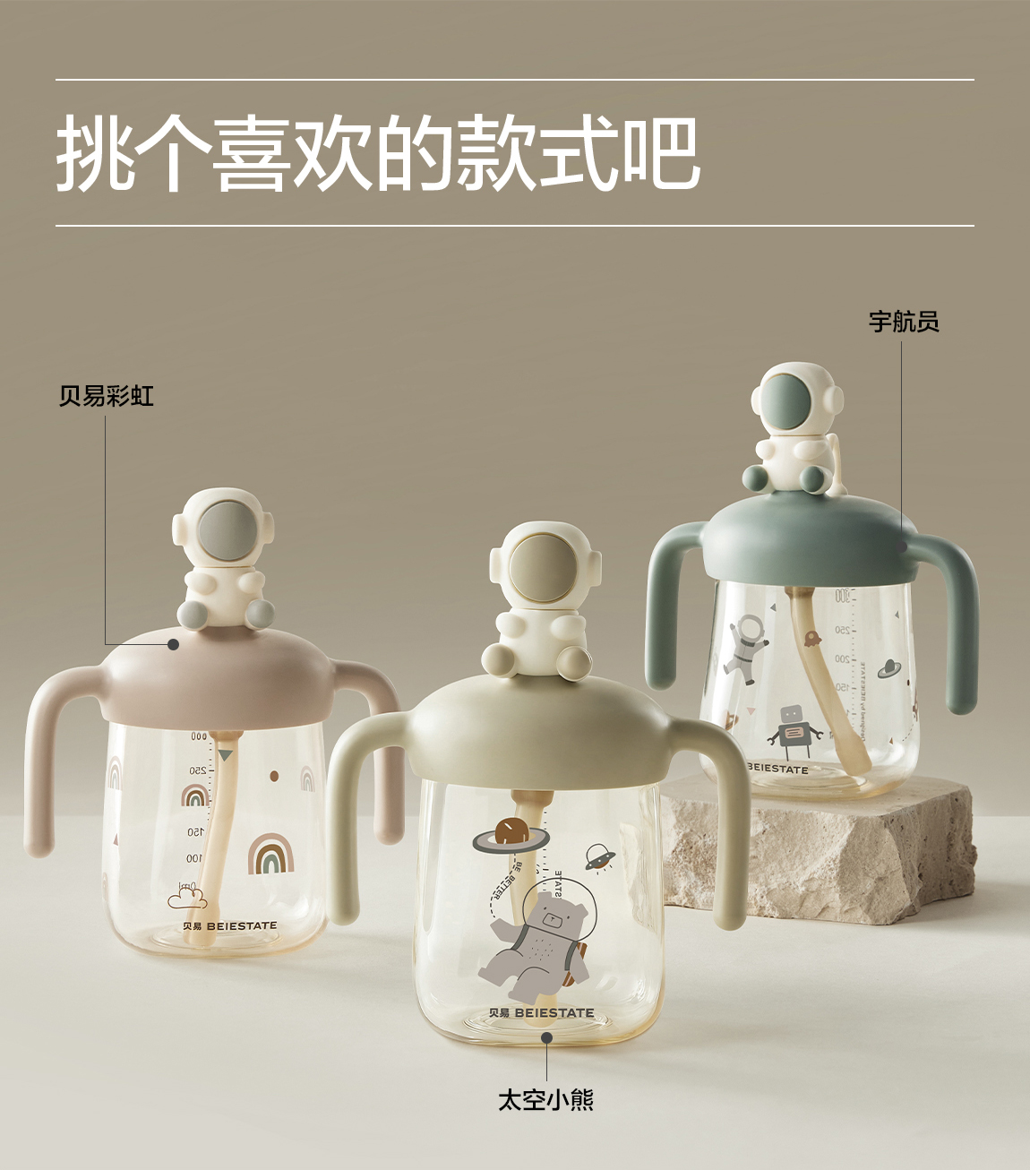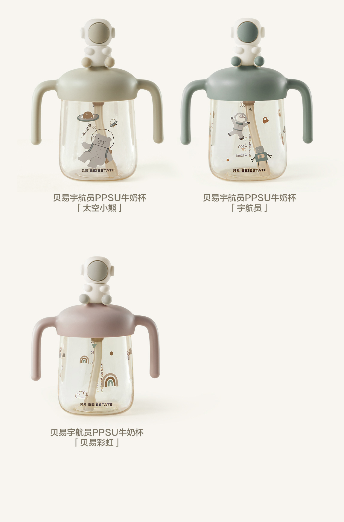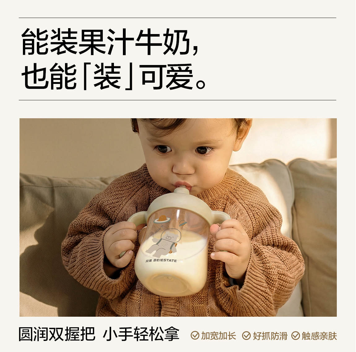 【新品上市】贝易宇航员牛奶杯1-3岁婴儿童宝宝喝水喝奶双吸管直饮【会员下单还送:奶瓶清洗剂。到货可联系客服参与评论反20红包哦】