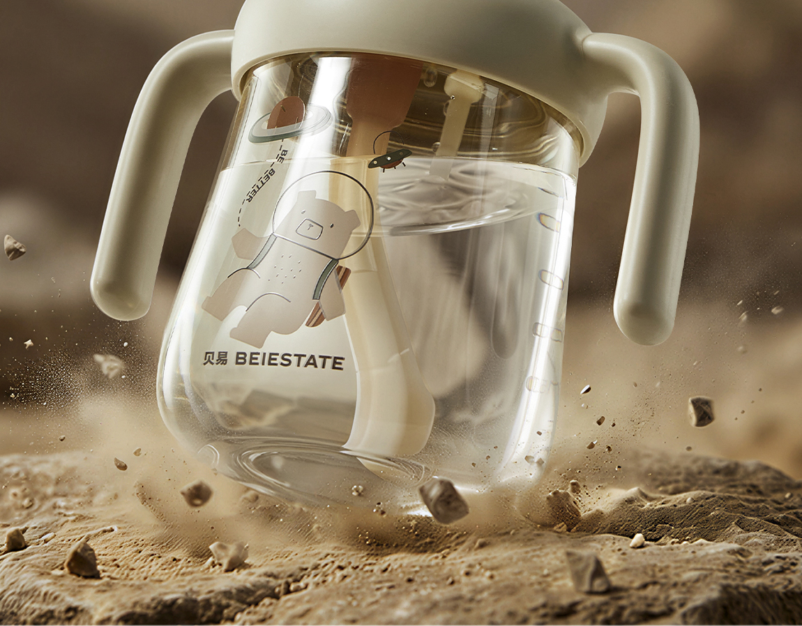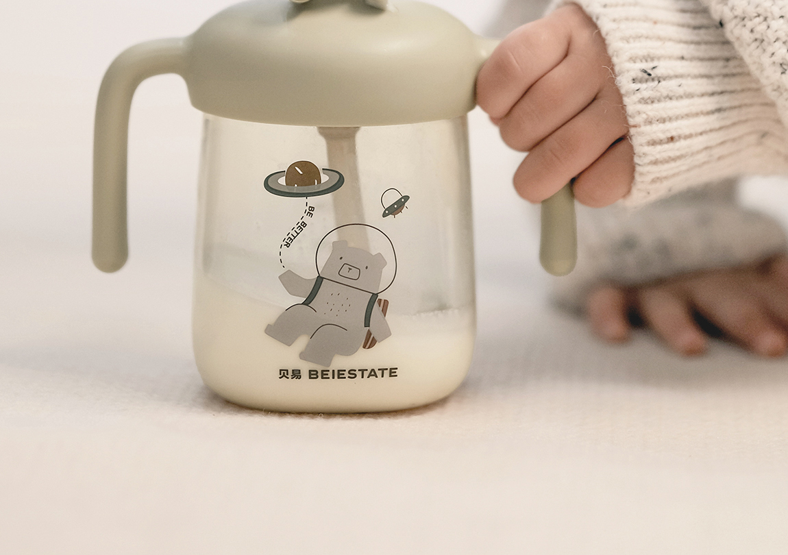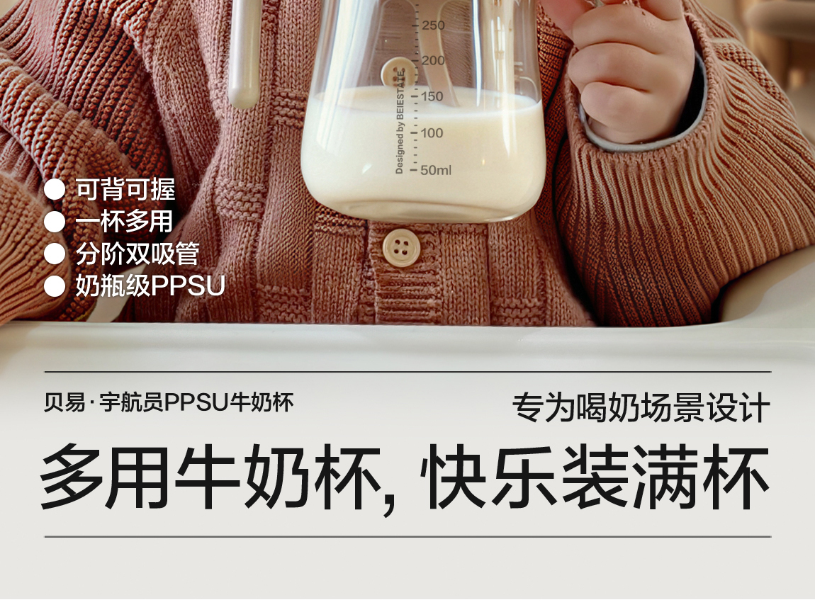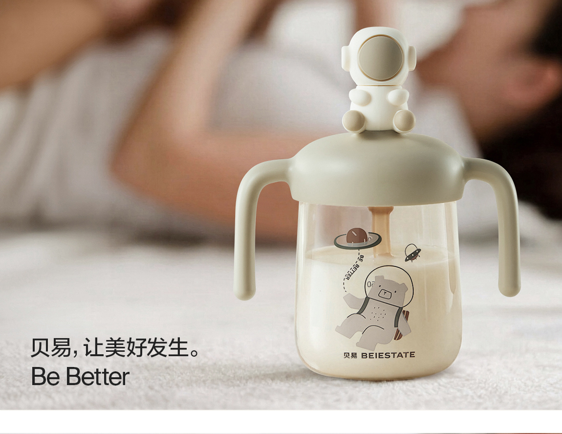 【新品上市】贝易宇航员牛奶杯1-3岁婴儿童宝宝喝水喝奶双吸管直饮【会员下单还送:奶瓶清洗剂。到货可联系客服参与评论反20红包哦】