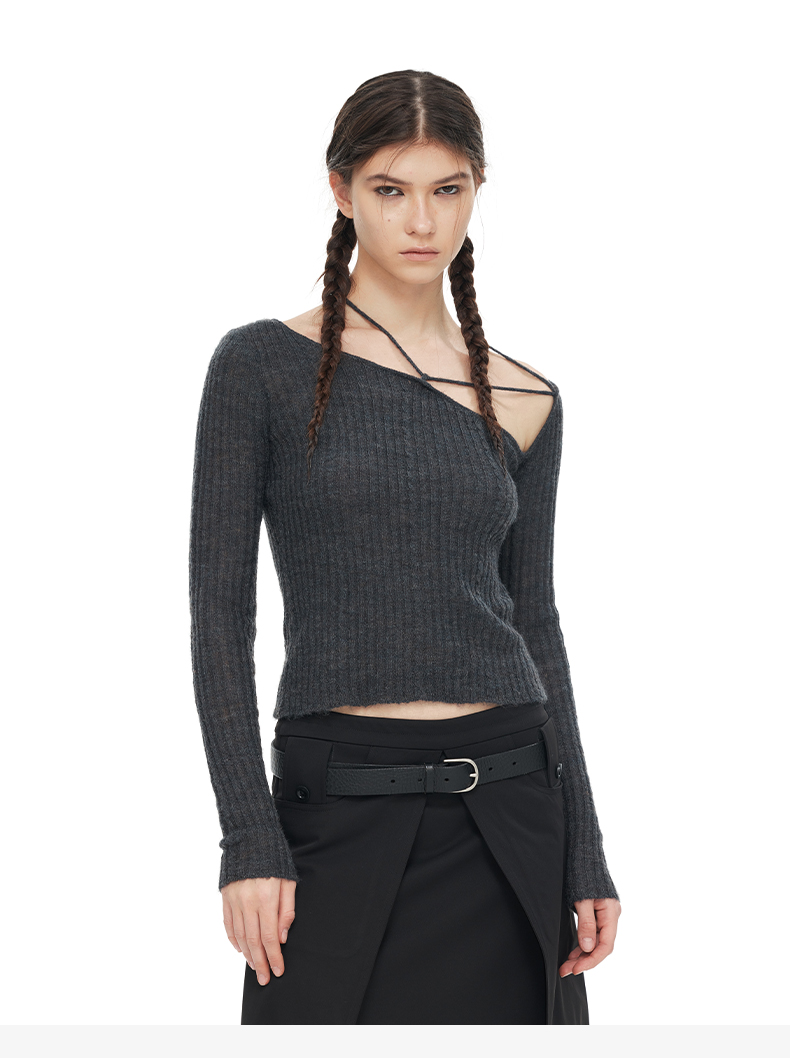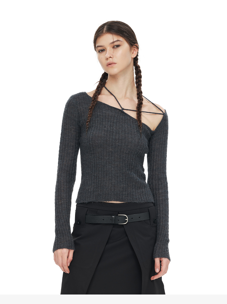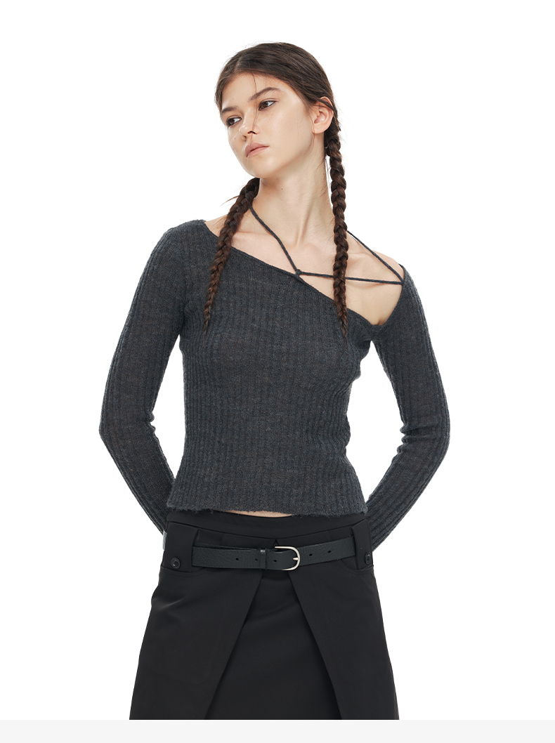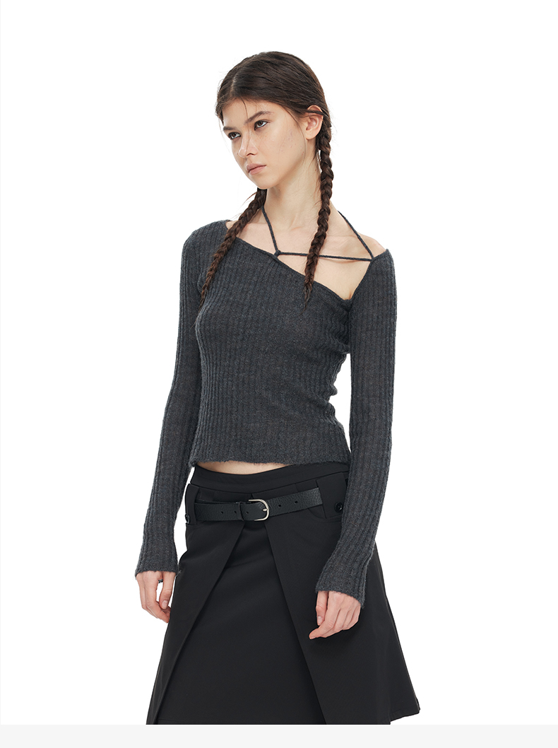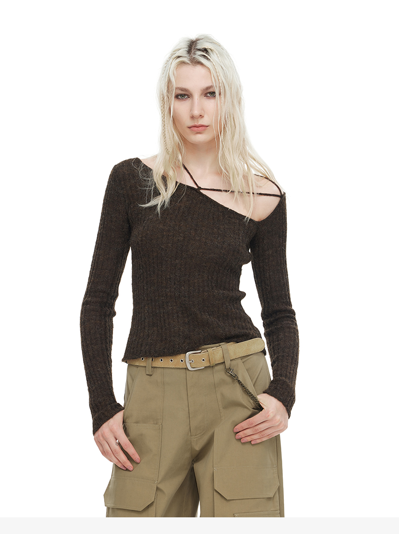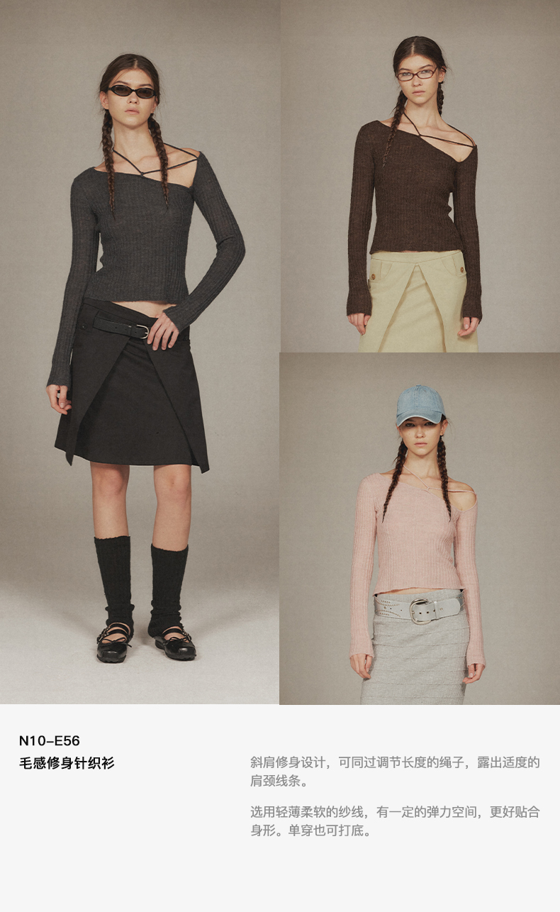 NUTH 薄款弹力设计感长袖修身针织衫女