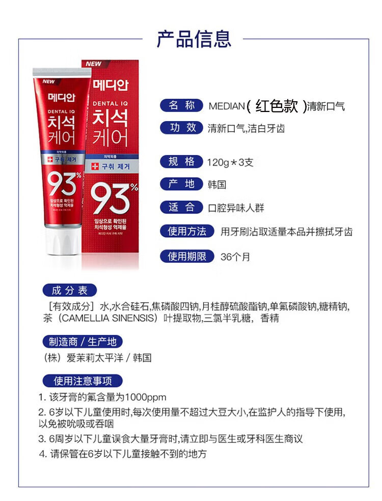 麦迪安 清新口气红管93%牙结石深层清洁牙膏(TATAR BADBREATH) 120G