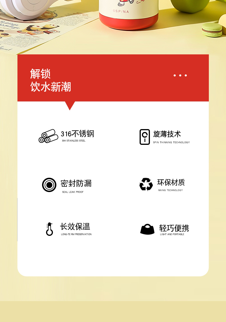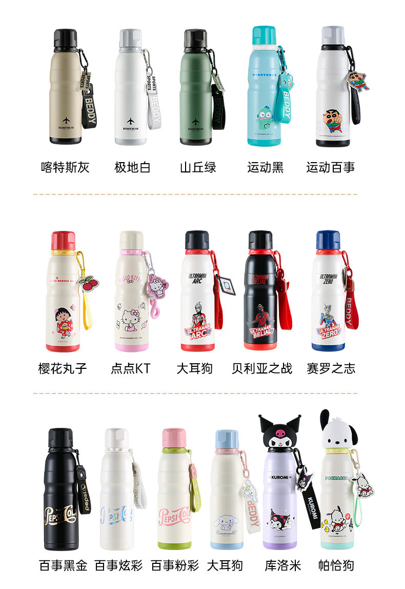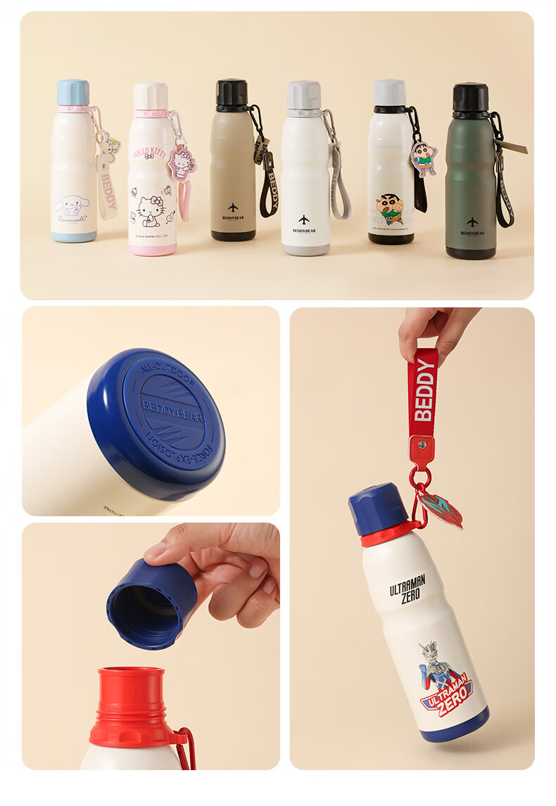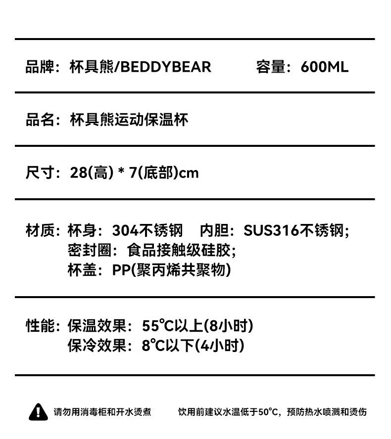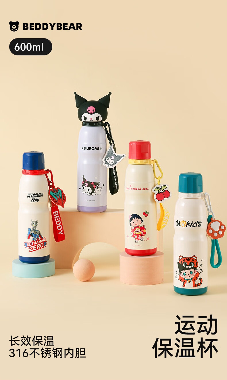 BEDDYBEAR杯具熊 户外运动水杯男女士保温杯保冷大容量上学用水杯便携送礼物316不锈钢卡通杯子 600ml