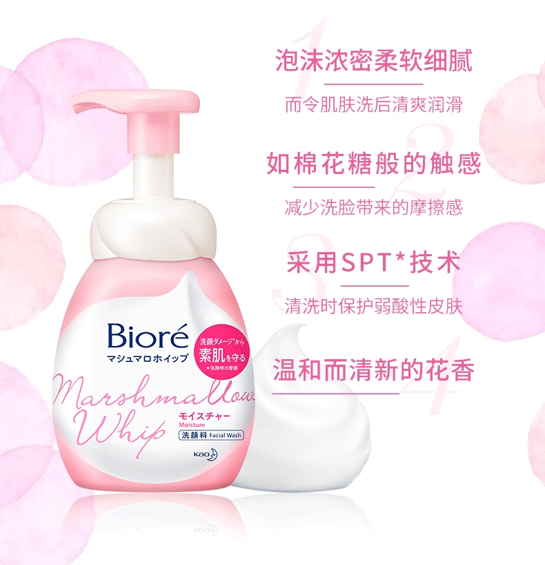 Biore 碧柔 棉花糖泡沫洗面奶 150ml 粉色保湿款