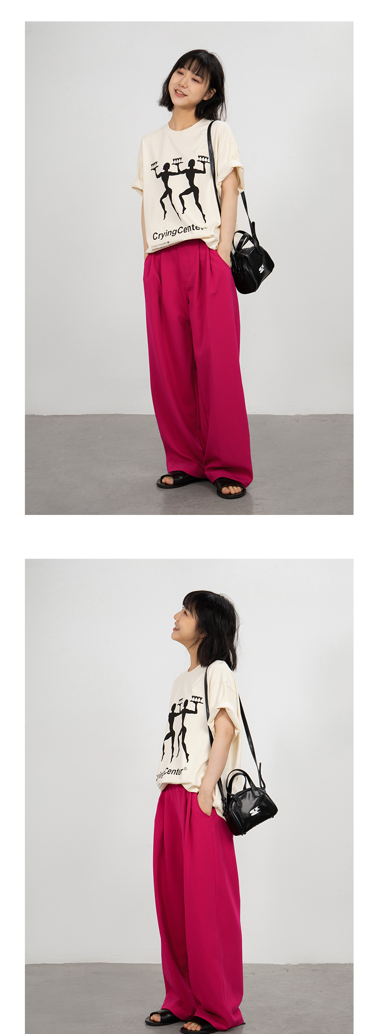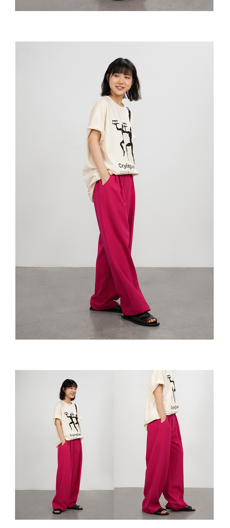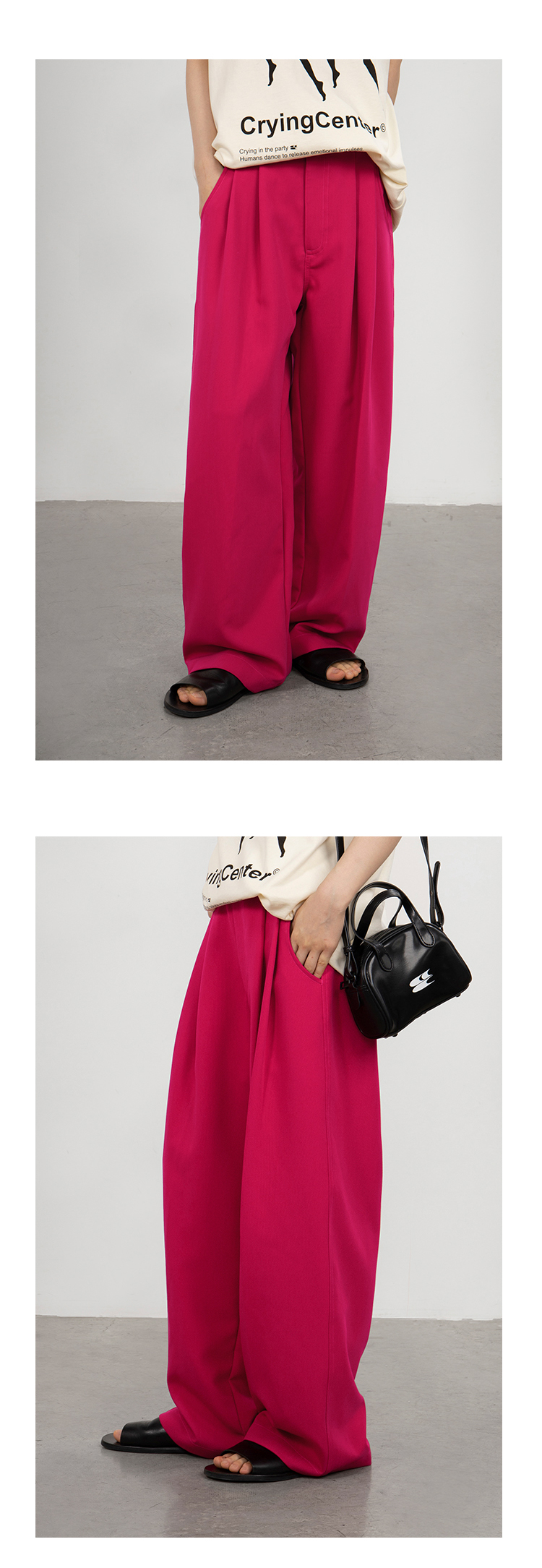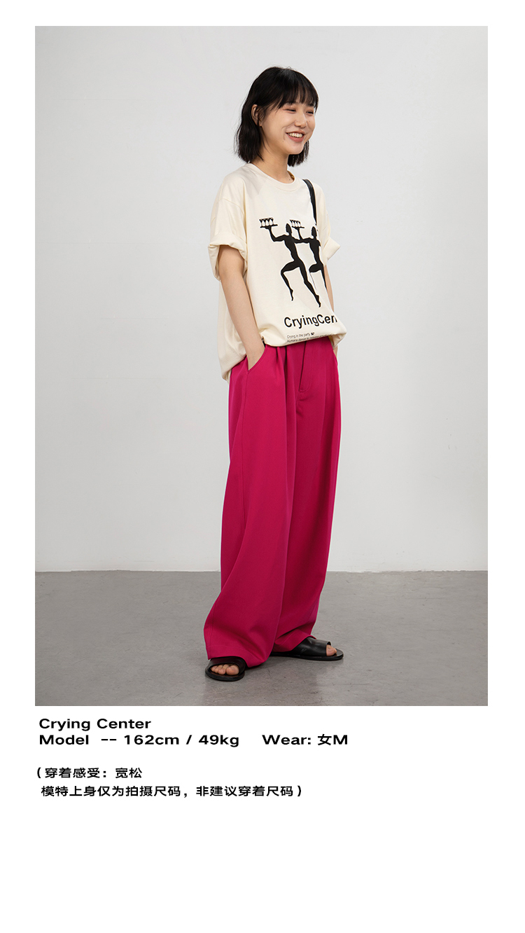 CryingCenter 火龙果色 显白宽松休闲西裤 哭喊中心