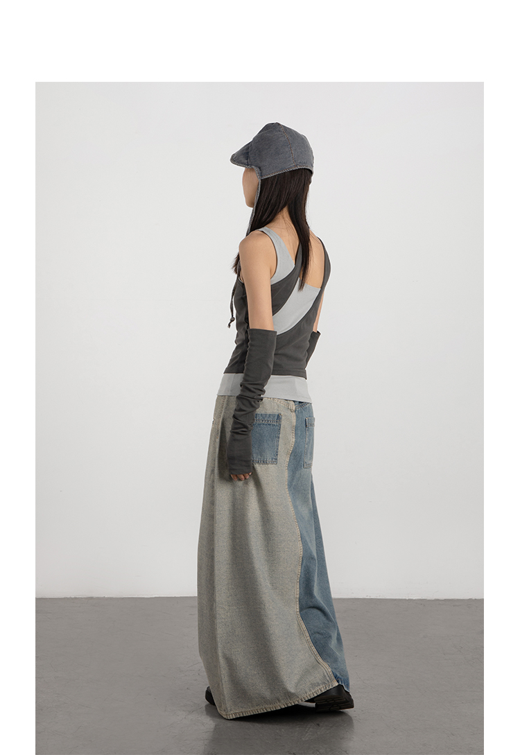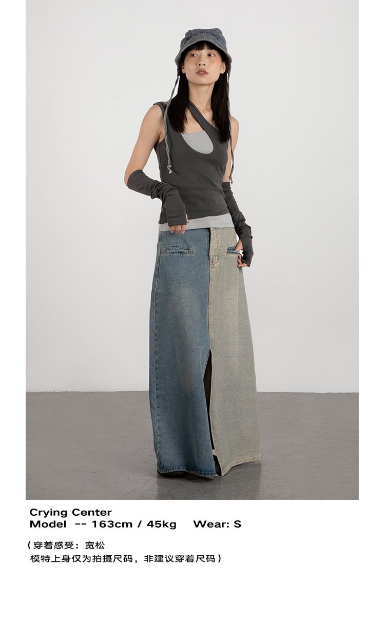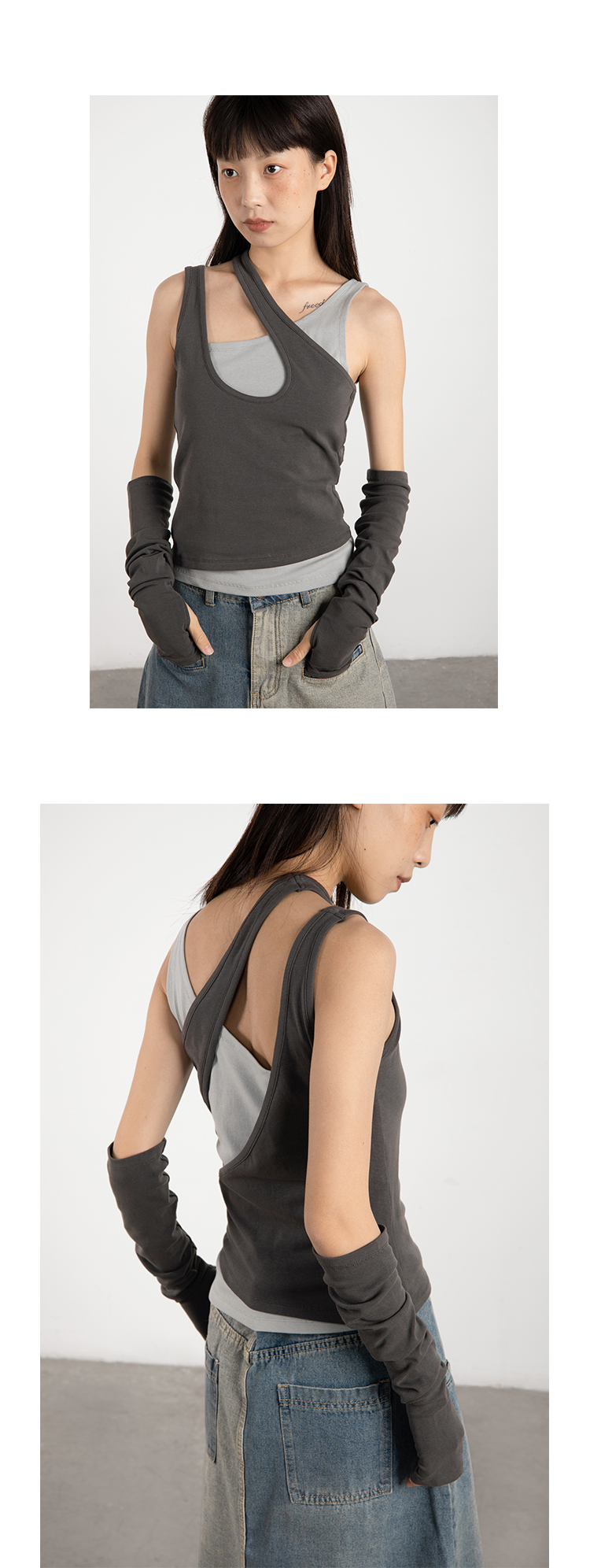CryingCenter 中古灰 千禧辣妹叠穿假两件背心配袖套