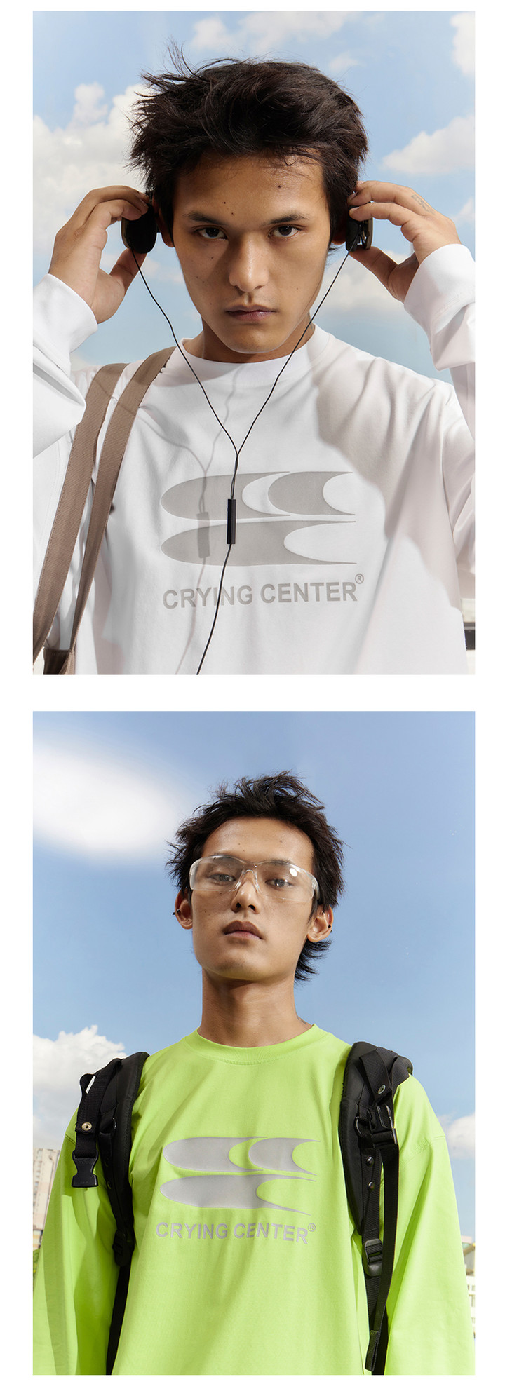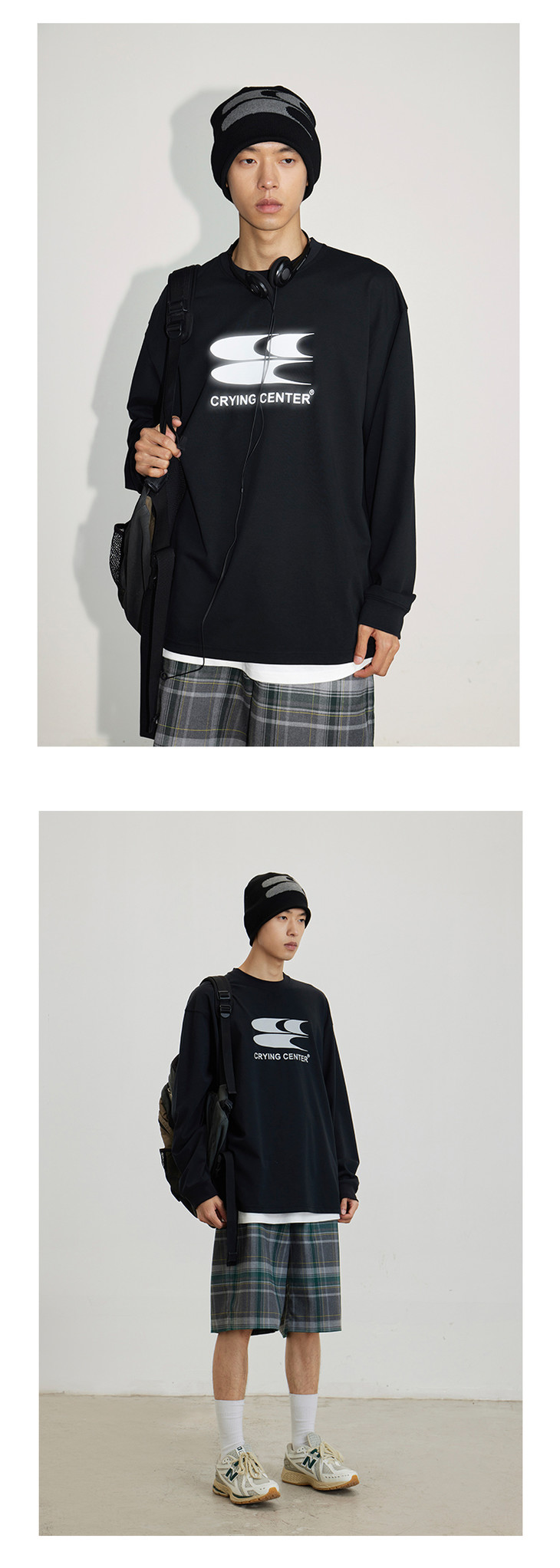 CryingCenter 3M反光金属感印花液氨凉感抗皱套头长袖T恤哭喊中心