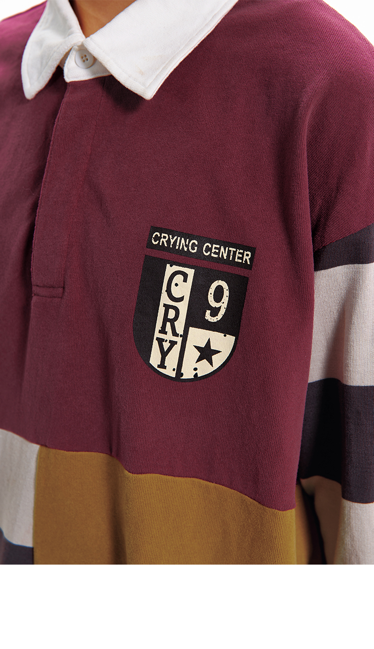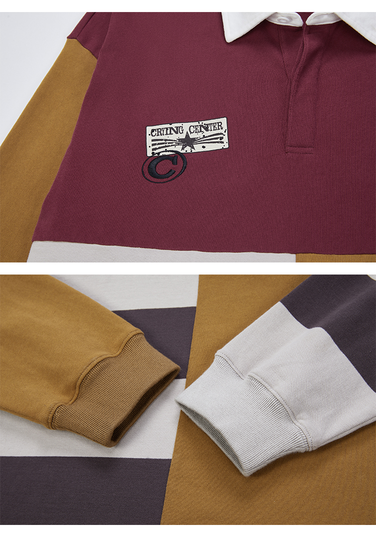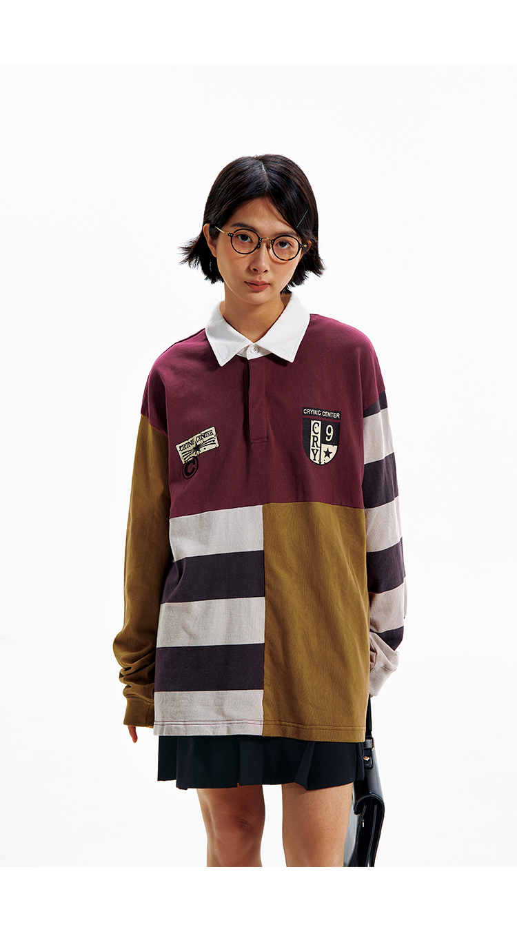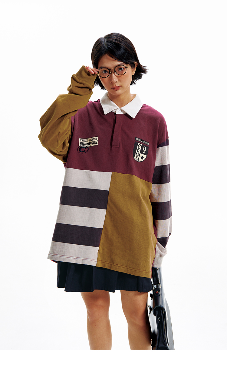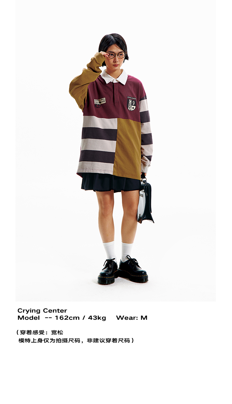 CryingCenter 条纹复古拼色学院polo衫男女同款 哭喊中心