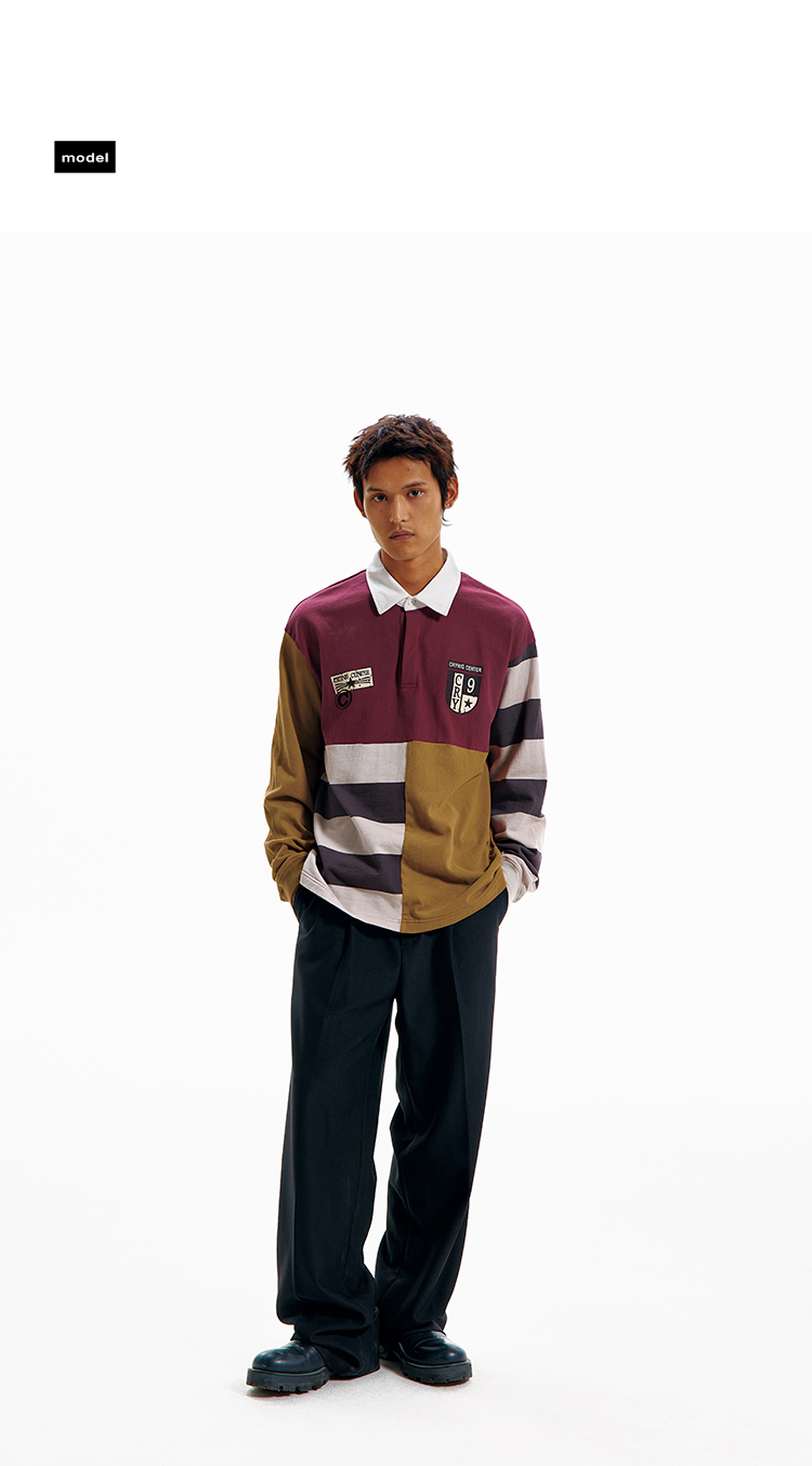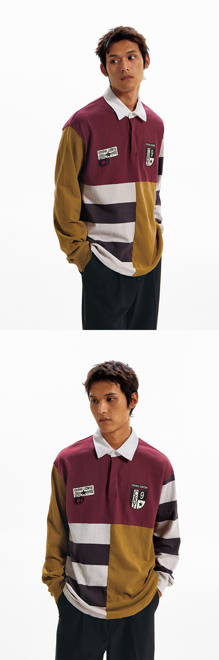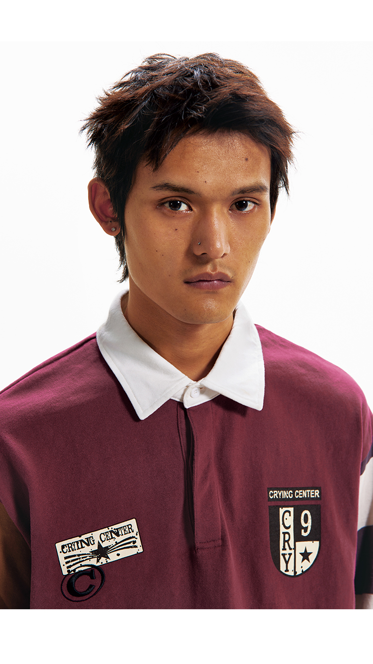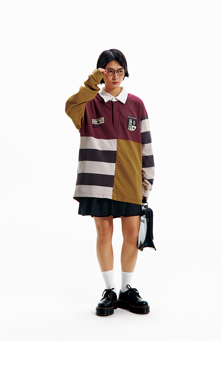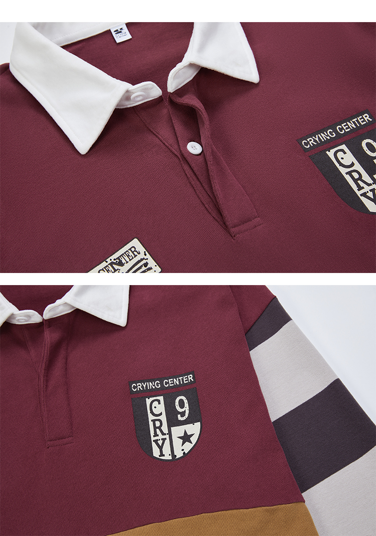 CryingCenter 条纹复古拼色学院polo衫男女同款 哭喊中心
